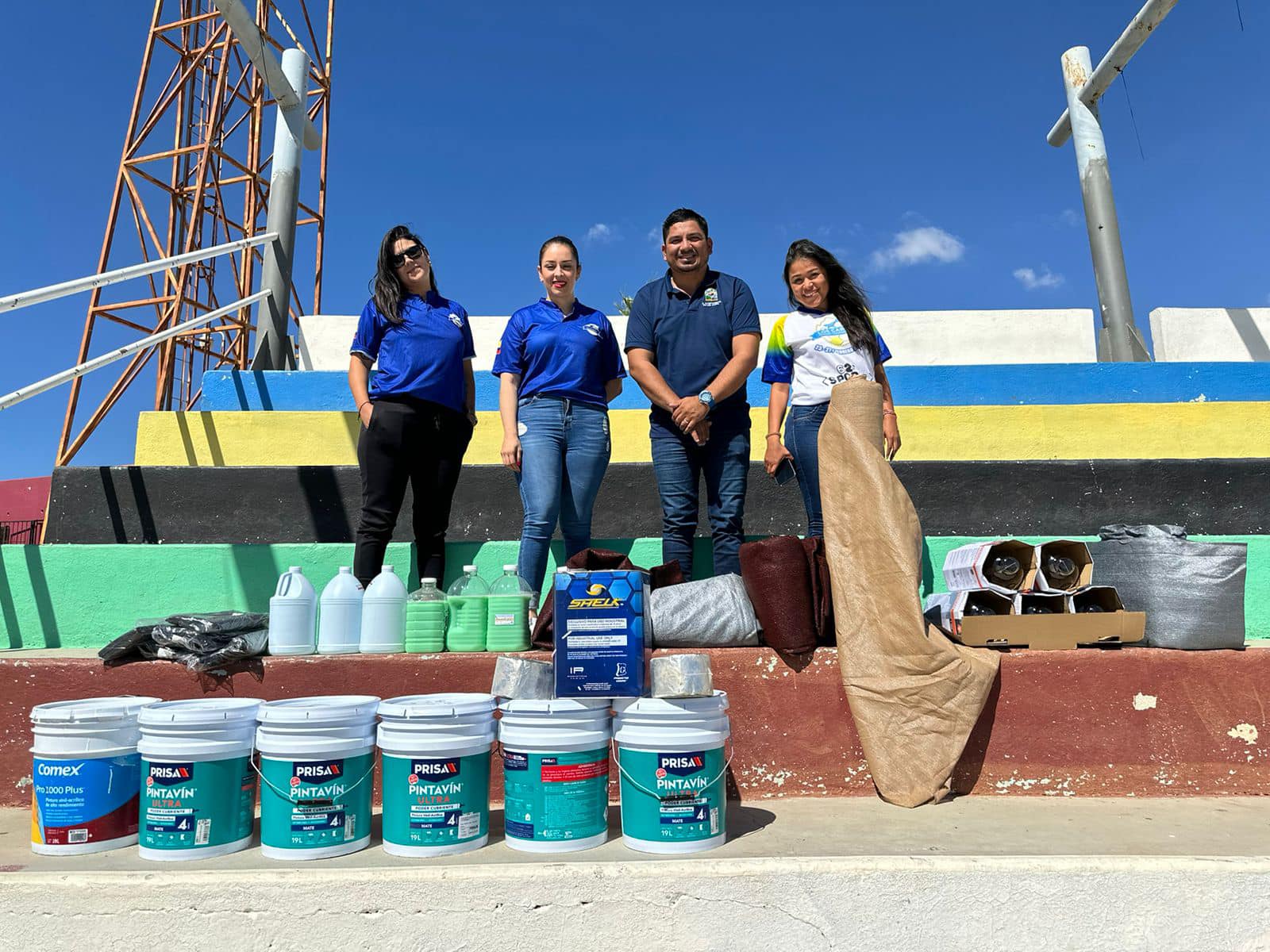 Entre los insumos recibidos se incluyen malla sombra, pegamento, pintura y productos de limpieza, los cuales ayudarán a renovar y acondicionar este importante espacio deportivo para los usuarios.