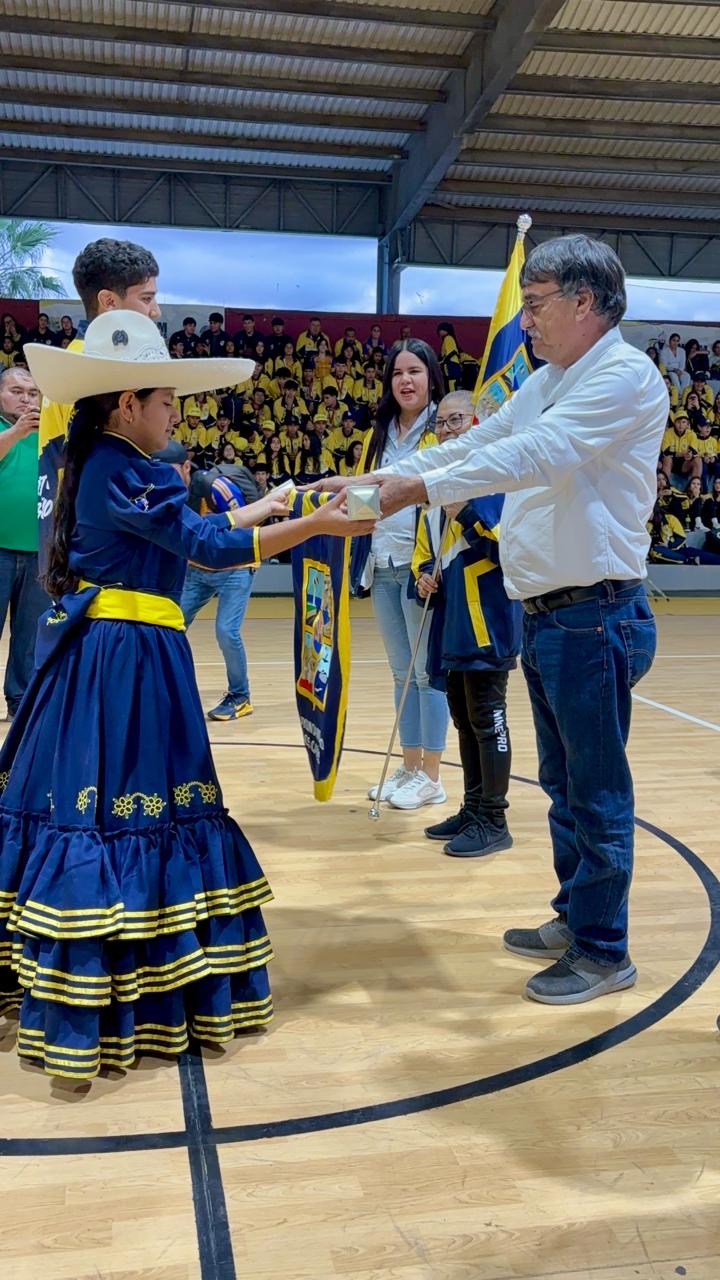 Con los debidos honores a los lábaros patrios por parte de la banda de guerra de la Dirección General de Seguridad Pública, Policía Preventiva y Tránsito Municipal, el contingente encabezado por autoridades municipales, madres y padres de familia, así como por docentes que estarán acompañando en todo momento a las y los deportistas cabeños, recibieron de parte del INDEM una breve explicación del actual uniforme que estarán portando, así como la reproducción de un video que recopila el esfuerzo que realizaron para llegar hasta este punto de la competencia.