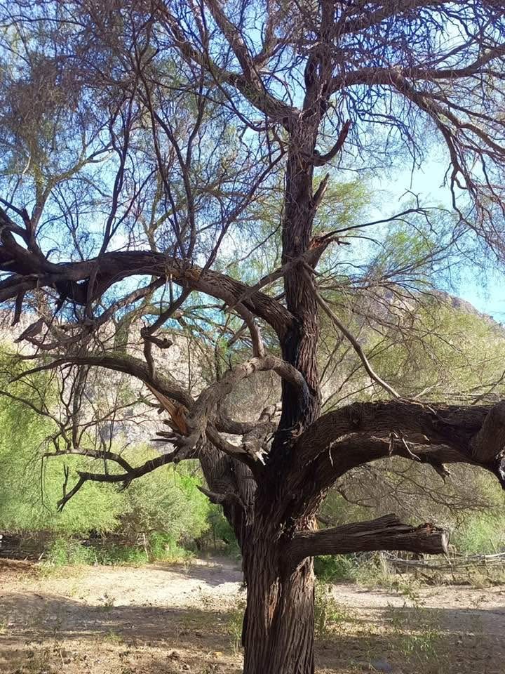 Esa tarde visité la huerta distante de la casa a menos de cien metros, muchos árboles frutales en plena producción; naranjos, toronjos, limas chichonas, mangos, aguacates, limones agrios y dulces, naranjas amargas, granados, parras y duraznos. El rancho se ubica sobre la ladera de la sierra de El Coyote, en el verde cañón de La Purificación, a un lado del arroyo y de la brecha que va al Bosque, la imponente sierra enfrente le da un toque especial al paisaje con sus acantilados, los corrales enfrente de la casa, es un ancón tupido de mezquites centenarios que han sobrevivido a los que hacen carbón, me llamó ver los gigantescos mezquites en pie, los viejos corrales llenos de bullingas de chiva y ganado, precioso rancho sudcaliforniano donde hace patria la familia Amador; Felipa, María, Lucia, Mauricio, Juan, Guadalupe, Venustiano y el benjamín de la familia, Jorge Luis Reyes Amador, todos ellos de buen trato, agradables y amables, son mis anfitriones en mis “parajeadas” en el Primer Bosque, a quienes les agradezco profundamente sus atenciones y confianza.