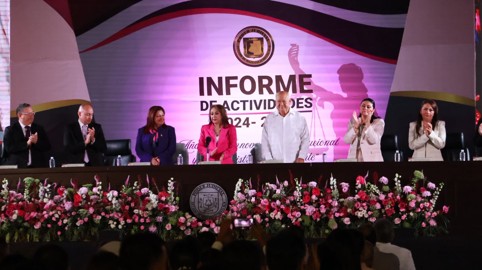 El acto se realizó en las instalaciones del Tribunal Superior de Justicia, donde el mandatario destacó que los resultados presentados por la magistrada presidenta reflejan un año de avances y consolidación en el proceso de transformación que vive el sistema judicial en el estado.