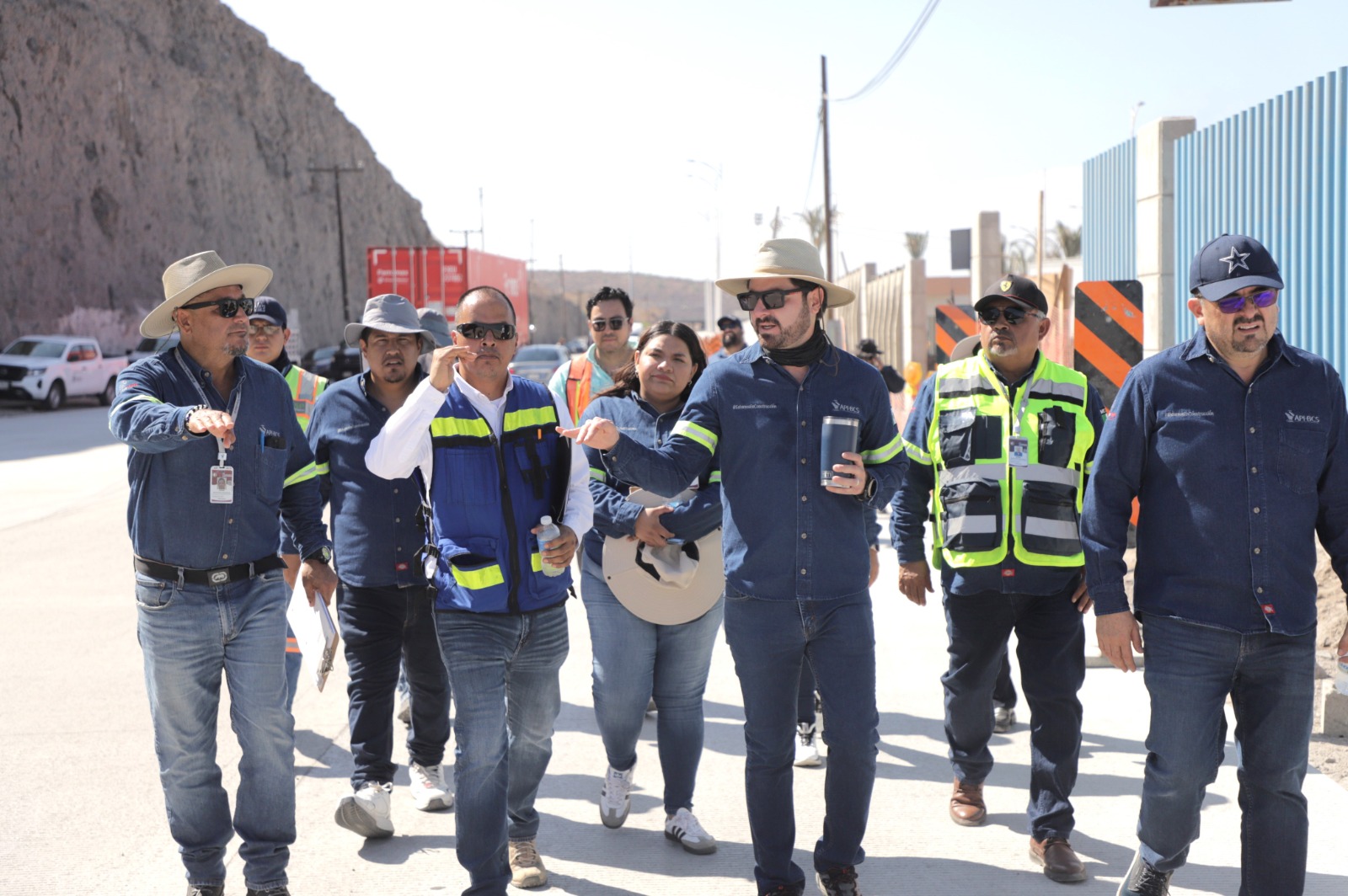 Durante el recorrido de supervisión en compañía del personal directivo de la API-BCS, el servidor público constató el término de los trabajos de construcción de la vialidad principal interior en concreto hidráulico, misma que está en funcionamiento para el rodamiento de carga, así como los avances en casetas de vigilancia, centro de monitoreo de seguridad y estacionamiento, correspondientes a la primera fase.