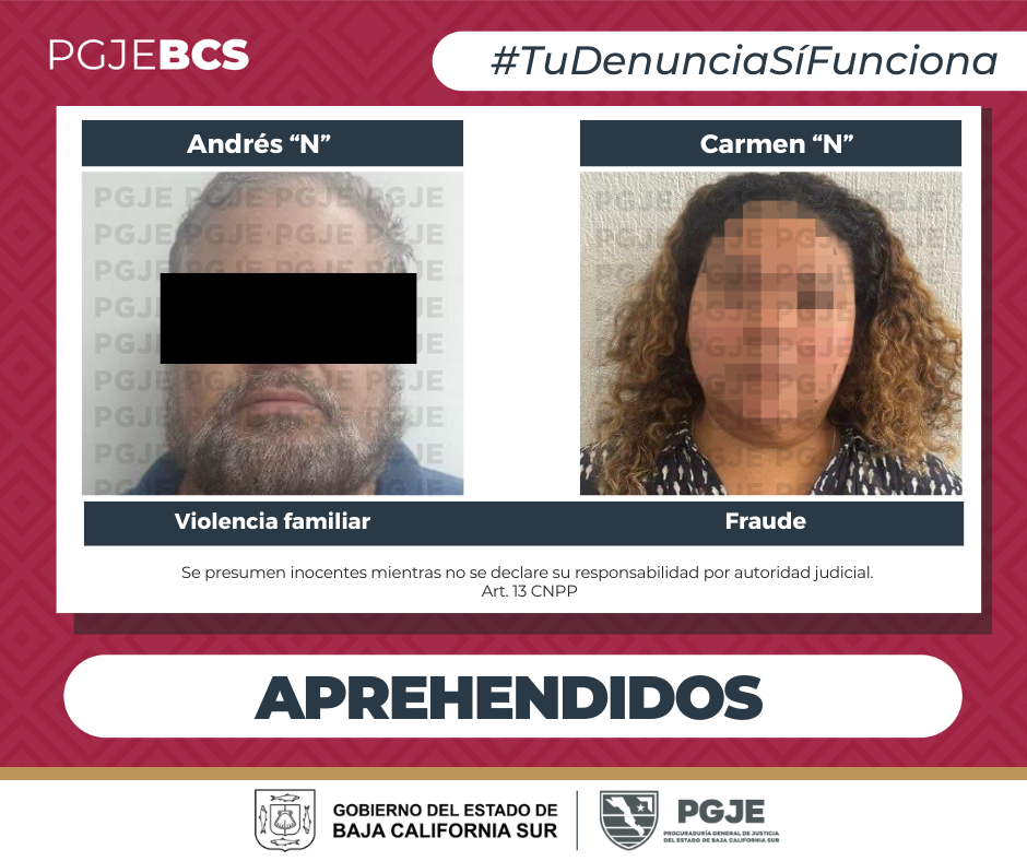 El miércoles 17 la ciudad de Cabo San Lucas, fue el escenario donde, en seguimiento a investigaciones por denuncias de diversos hechos ilícitos, agentes de investigación de la Procuraduría General de Justicia del Estado (PGJE), realizaron operativos, mediante los cuales aprehendieron a una persona del sexo masculino y a una mujer.
