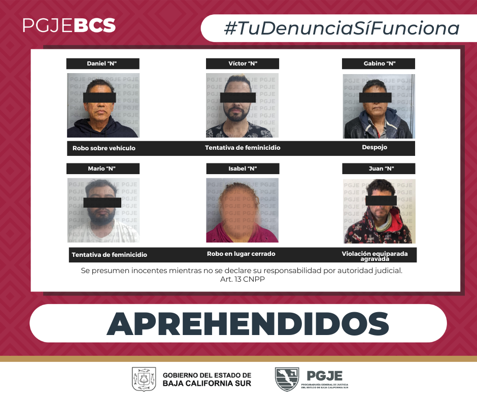 En seguimiento a investigaciones en torno a denuncias por actividades ilícitas, agentes de investigación de la Procuraduría General de Justicia del Estado (PGJE), realizaron operativos mediante los cuales, se aprehendió a 6 personas, 5 del sexo masculino y 1 mujer.