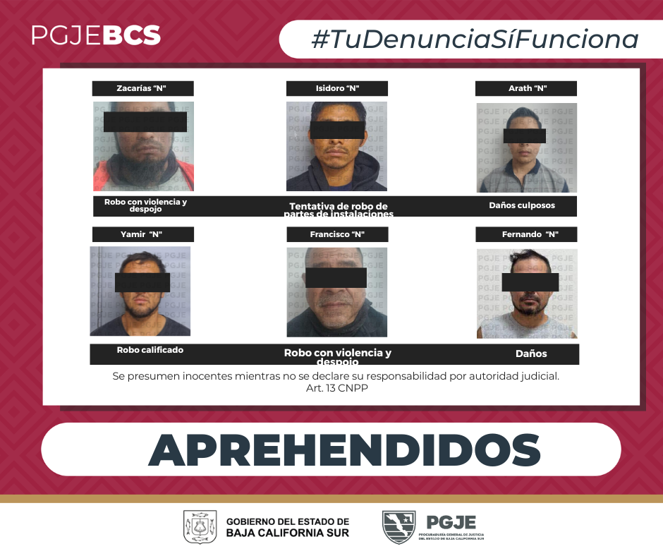 Para dar seguimiento a investigaciones por denuncias de actividades ilícitas de parte de las víctimas, agentes de investigación de la Procuraduría General de Justicia del Estado (PGJE), realizaron operativos mediante los cuales aprehendieron a 6 personas del sexo masculino.