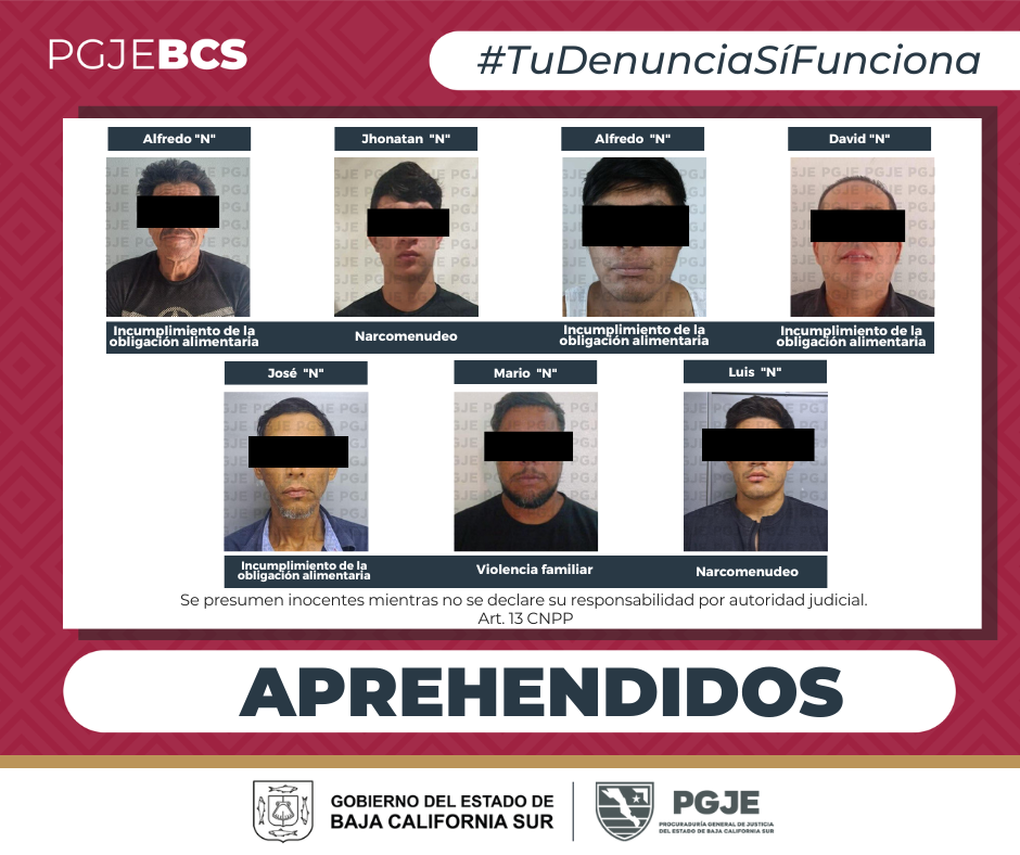 Finalmente, el mismo miércoles 29 en el sur del estado, se aprehendió a Mario “N”, de 40 años de edad, en la colonia Centro de Cabo San Lucas, por su relación con el delito de violencia familiar.