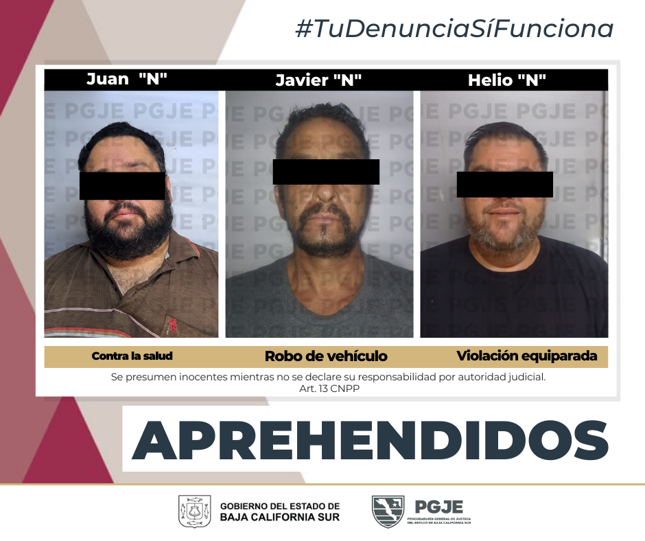 Los imputados fueron puestos a disposición del Juez de Control del Juzgado del Sistema Penal Acusatorio del Partido Judicial de La Paz, quien determina su situación jurídica.
