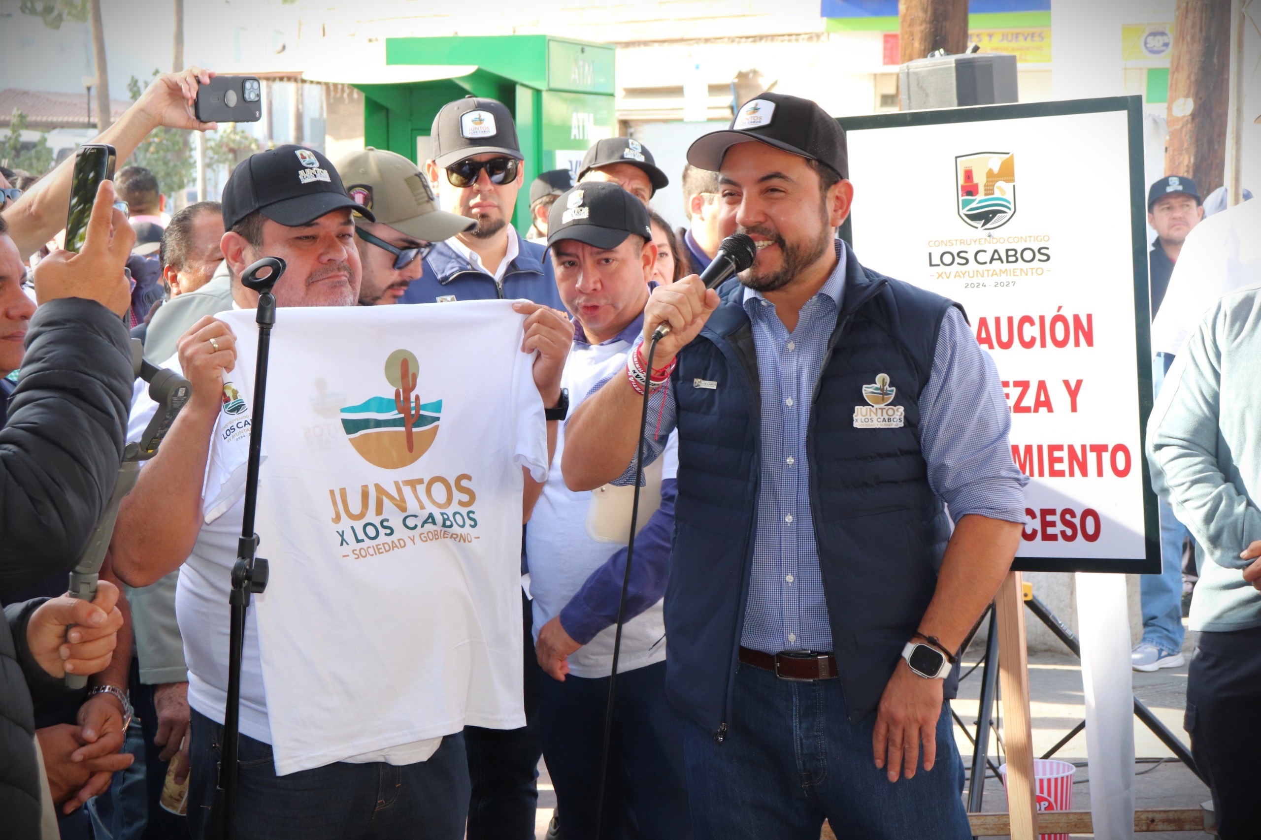 Los Cabos, Baja California Sur.- El presidente municipal de Los Cabos, arquitecto Christian Agúndez Gómez dio inicio a los trabajos del programa municipal “Juntos por Los Cabos: Sociedad y Gobierno”, el cual consiste en el ordenamiento y embellecimiento del municipio, siendo en esta ocasión la zona Centro de Cabo San Lucas el primer punto de esta iniciativa.