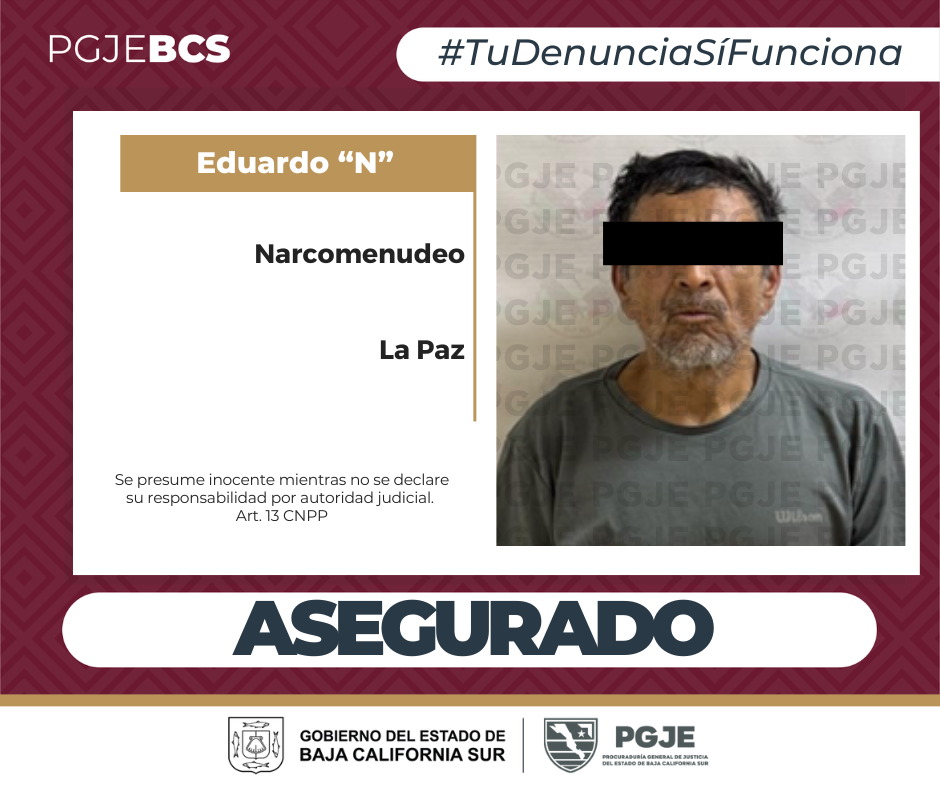 La PGJE recuerda a la ciudadanía el número telefónico 800 4 74 53 22 y la aplicación DACPGJEBCS para hacer reportes anónimos de alguna conducta ilícita, para emergencias marque el 911.