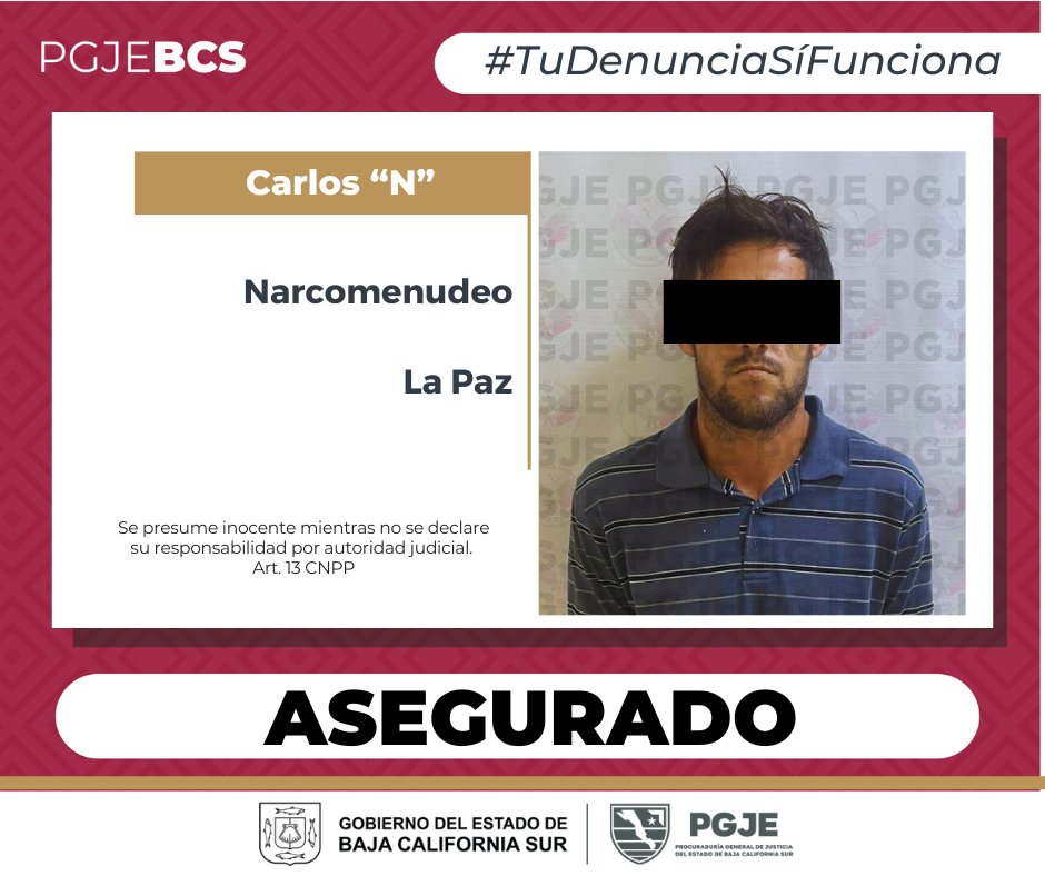 La noche del lunes 10 del mes en curso, en el fraccionamiento San José en la capital del estado, agentes de Investigación de Delito de Comercio de Narcóticos de la Procuraduría General de Justicia del Estado (PGJE), de Baja California Sur, aseguraron a una persona del sexo masculino identificado comoCarlos “N” con 205 dosis de narcóticos.