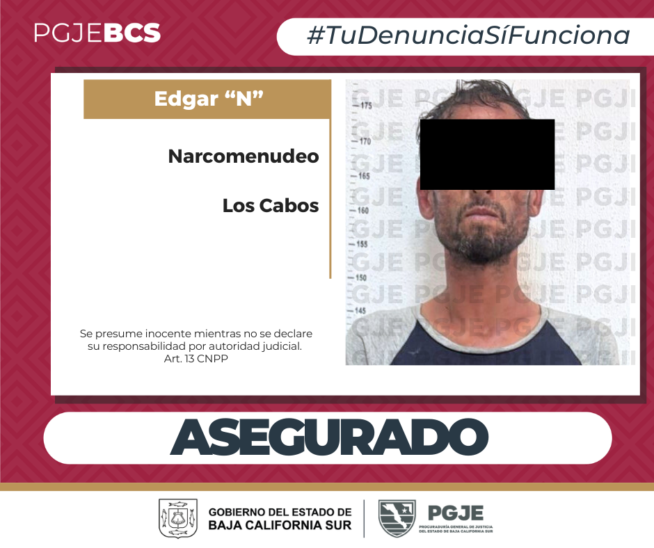 En el inmueble ubicado en la calle Sodio entre Ing. Israel y Jaime Nuño, fue detenido quien se identificó como Edgar “N”, de 32 años de edad, originario de Cabo San Lucas.