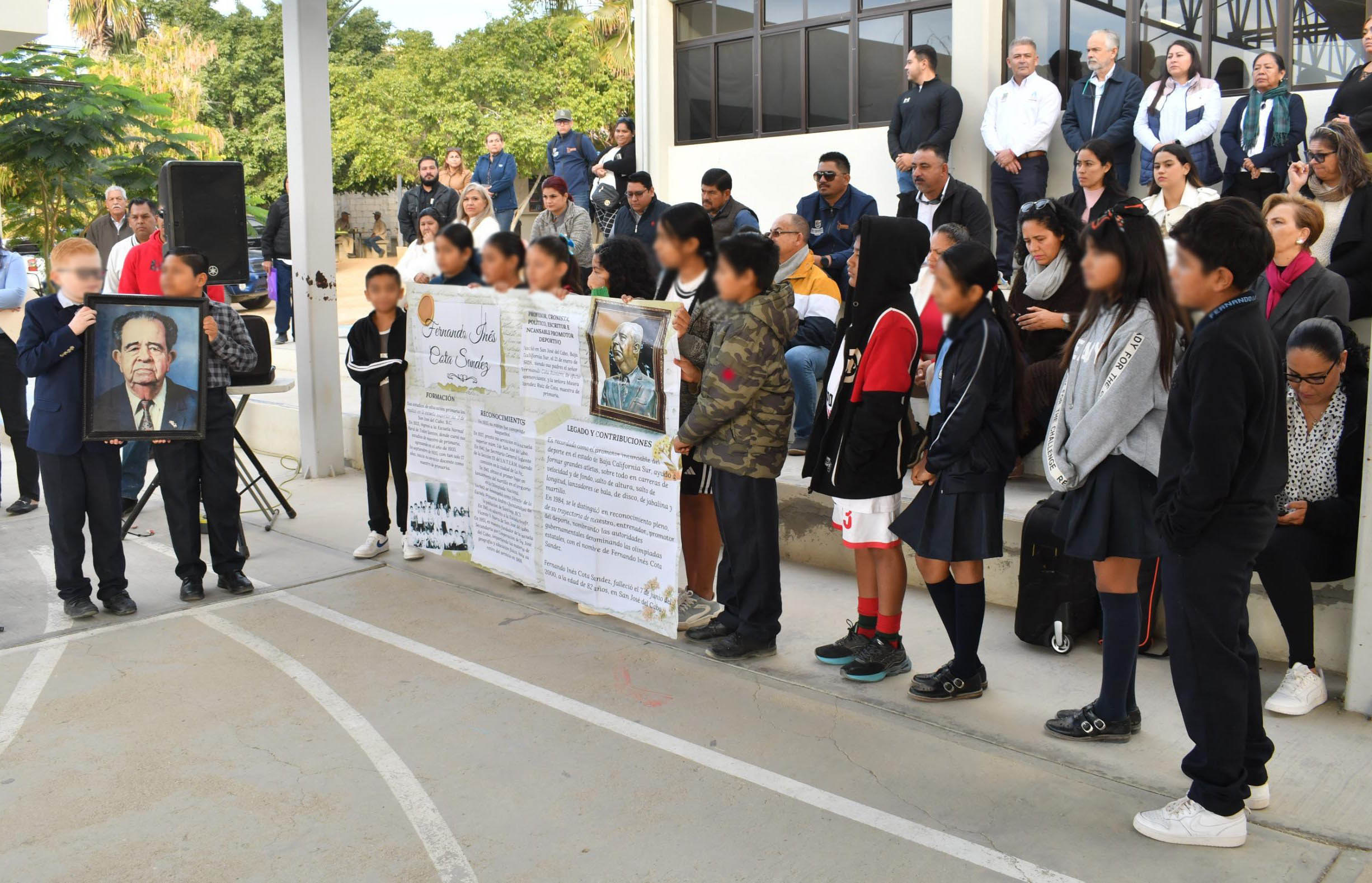 El acto cívico, se desarrolló en el nuevo edificio delegacional que se localiza en la colonia Brisas del Pacífico en punto de las 08:00 de la mañana, con la asistencia de estudiantes de las primarias Jesús Castro Agúndez, Fernando Inés Cota Sández e Ildefonso Green Ceseña, participaron con la presentación de un trabajo de investigación y dando lectura a las biografías y líneas de tiempo de los sudcalifornianos ilustres, resaltando la defensa a la soberanía de esta tierra, la promoción del deporte, así como sus legados y trabajos políticos en beneficio de la ciudadanía.