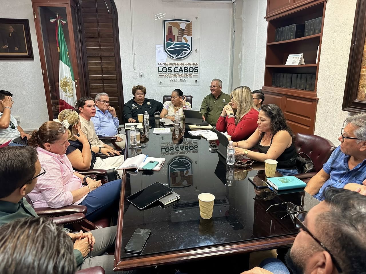 Los Cabos, Baja California Sur.- Con el objetivo de implementar acciones que propicien un óptimo ambiente laboral dentro de las áreas que conforman el XV Ayuntamiento de Los Cabos y que se refleje en una mejor atención a la ciudadanía, la directora municipal de Recursos Humanos, Silvia Fernanda Collins Agúndez sostuvo una reunión de trabajo con integrantes del Cabildo de Los Cabos, así como con el tesorero municipal Rigoberto Arce Martínez, el jefe de Gabinete Guillermo Sánchez Flores, el oficial mayor Carlos Alberto Beltrán Olmeda y titulares de diviersas dependencias involucradas.