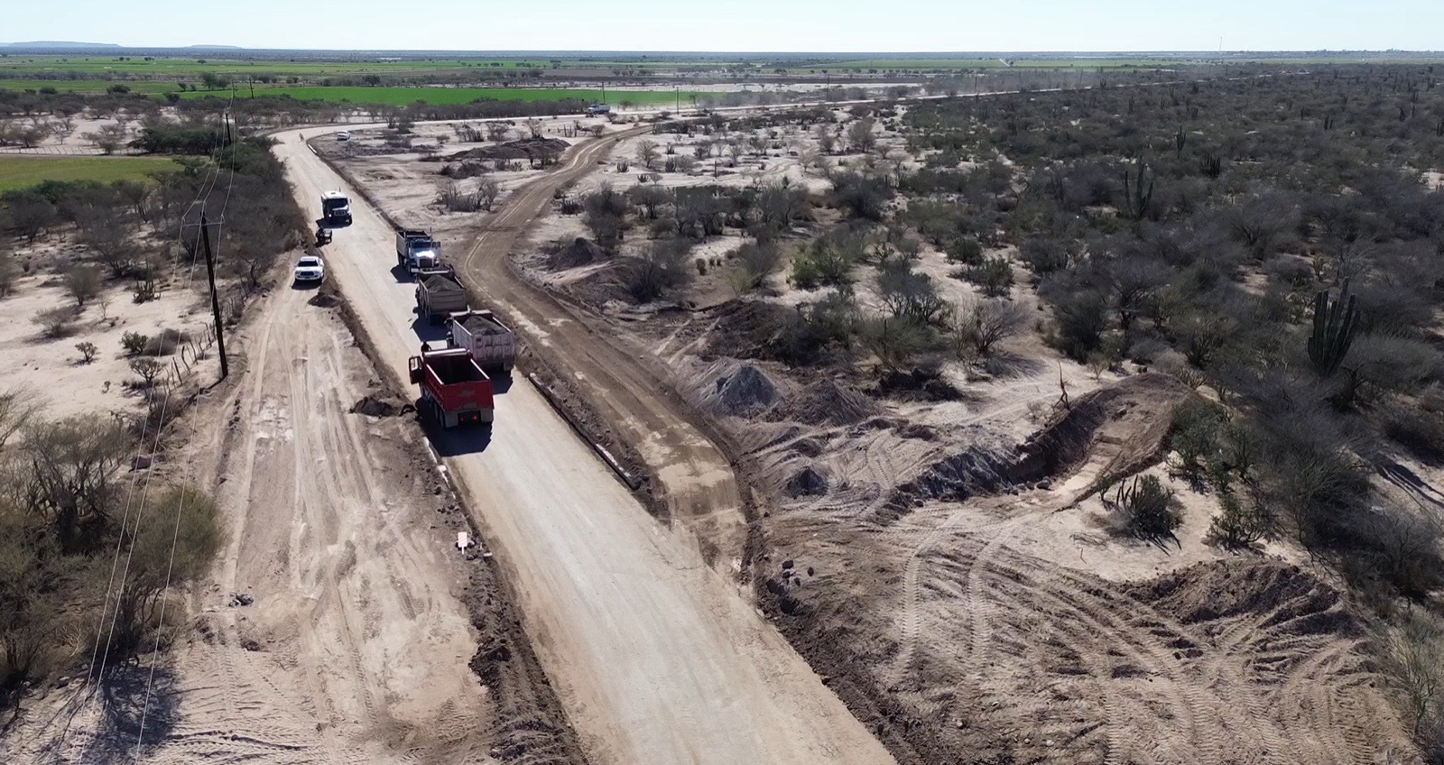 En Comondú, el Gobierno del Estado, a través de la Junta Estatal de Caminos (JEC), ha mantenido su compromiso de continuar mejorando caminos para generar mejores condiciones de movilidad. Por ello, avanza la obra de pavimentación del camino que comunica los Ejidos Ley Federal de Aguas 3 y Ley Federal de Aguas 4.