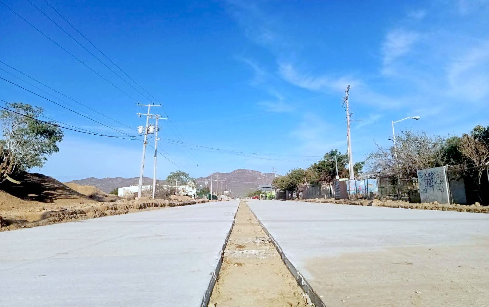 A través de la Dirección General de Obras Públicas y Asentamientos Humanos, dirigida por Christopher Enríquez González, se registra un avance significativo en la pavimentación integral con concreto hidráulico de la calle Profesor Miguel Antonio Olachea Carrillo, ubicada en la colonia Leonardo Gastélum de Cabo San Lucas.
