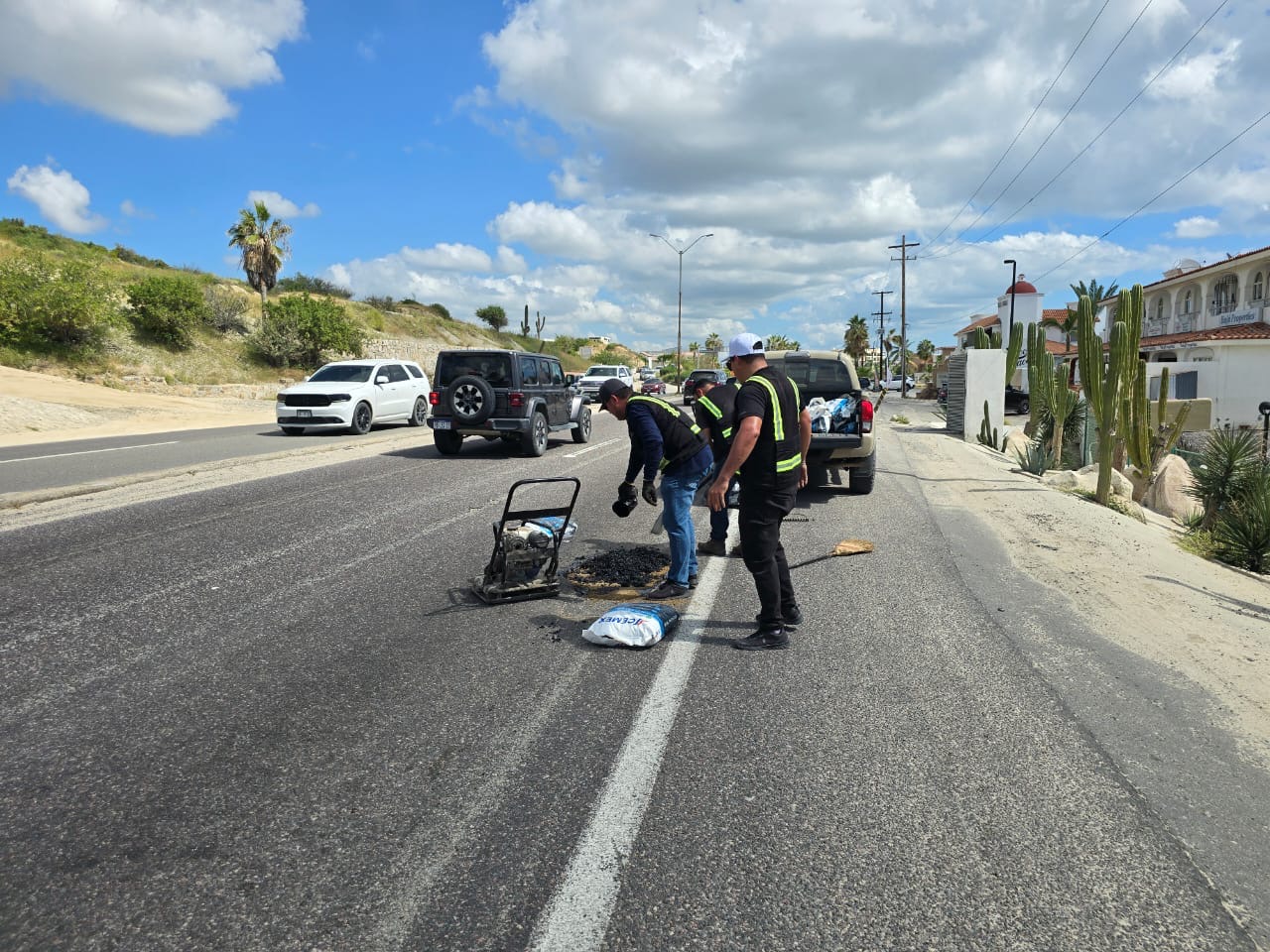 Los Cabos, Baja California Sur.- En seguimiento a la implementación puntual del programa permanente “Caza Baches”, impulsada por el presidente municipal del XV Ayuntamiento de Los Cabos, Christian Agúndez Gómez, la Dirección General de Obras Públicas y Asentamientos Humanos intensifica los trabajos de bacheo para el mejoramiento de condiciones de movilidad en diversos puntos del municipio.