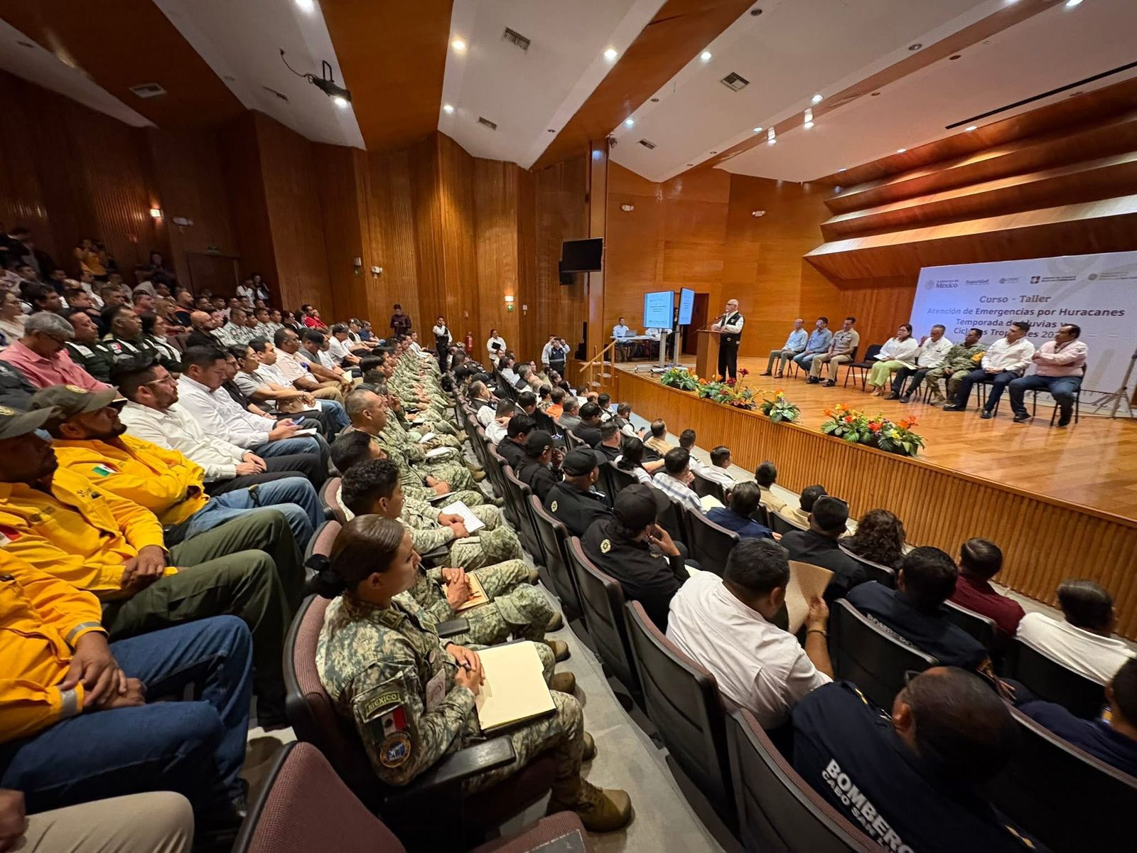 En representación del gobernador del estado, Víctor Manuel Castro Cosío, la subsecretaria General de Gobierno, Claudia Elena Meza de la Toba inauguró, junto al director general para la Gestión de Riesgos de la Coordinación Nacional de Protección Civil, Eduardo Olmos Tomasini y el subsecretario del ramo en la entidad, Héctor Amparano Herrera, el curso “Atención de Emergencias por Huracanes”, dirigido a 217 integrantes del Sistema Estatal de Protección Civil en Baja California Sur, a fin de fortalecer la cultura de la prevención.