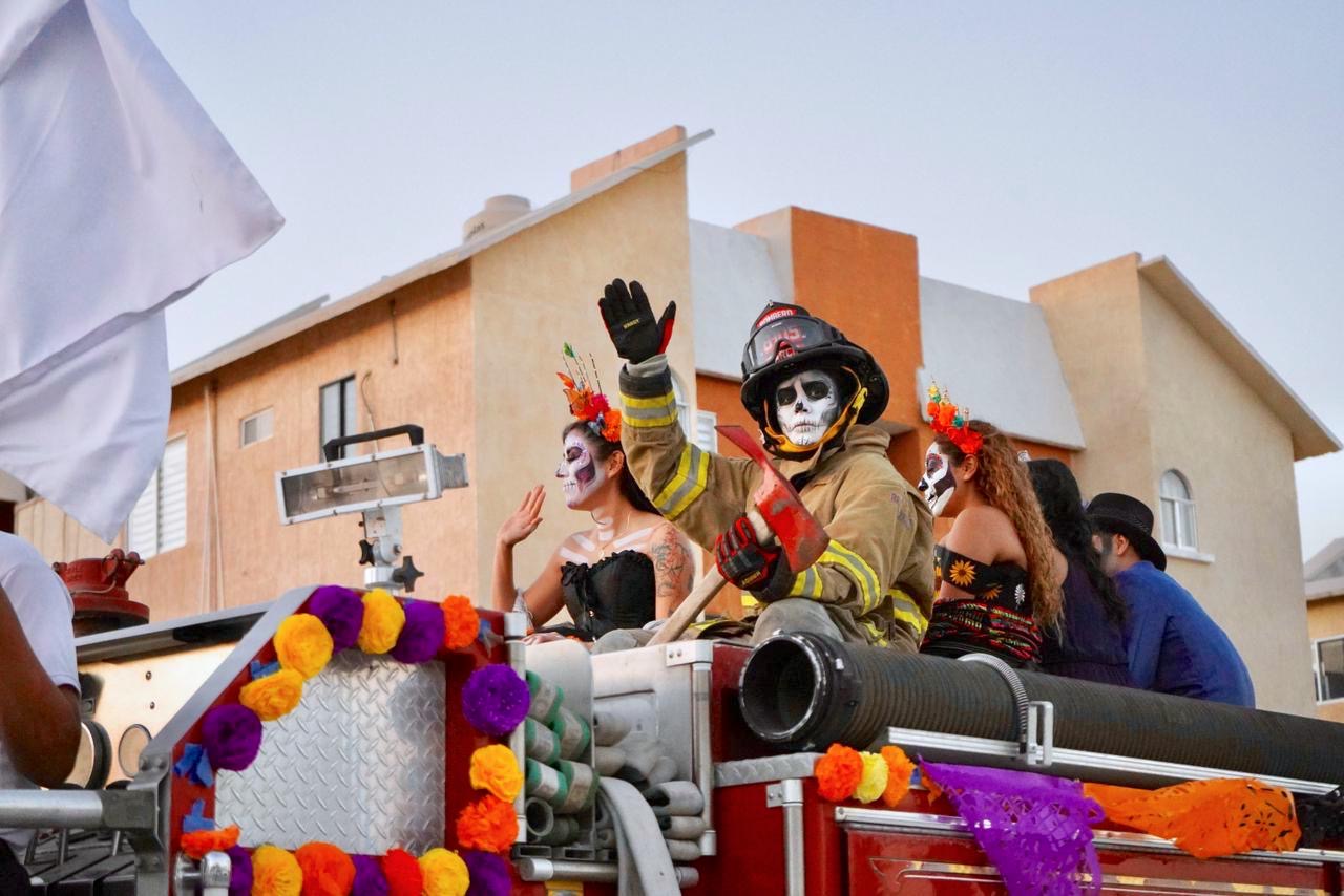 Los Cabos, Baja California Sur.- Con gran participación ciudadana, el XV Ayuntamiento de Los Cabos celebró el Día de Muertos en el corazón de Cabo San Lucas, a través de la Delegación Municipal, encabezada por Karina de la O Uribe, quien encabezó el Desfile Vial organizado por Canirac y el Festival Mar de Ofrendas, enmarcado dentro del programa “Viva La Plaza”, impulsado por la Asociación de Empresarios de Los Cabos.