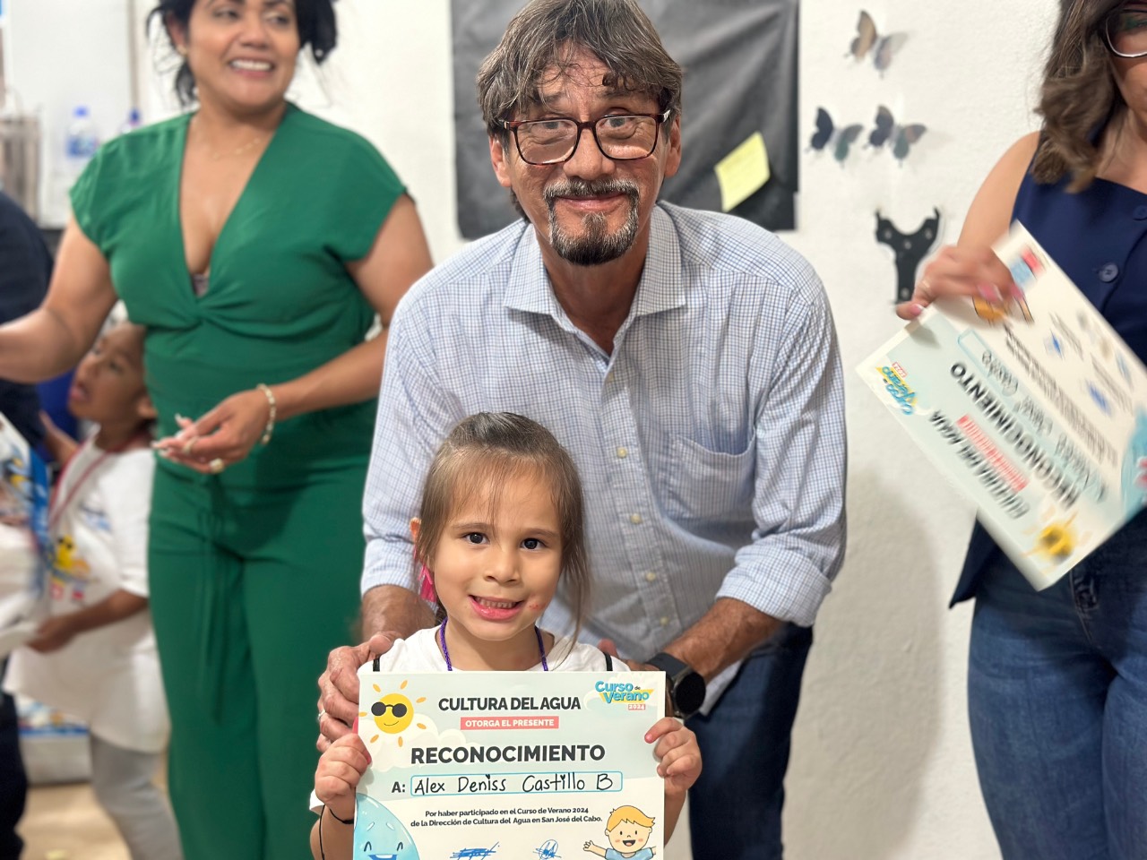 Los Cabos, B.C.S., 07 de agosto del 2024.- Con excelentes resultados el equipo del Organismo Operador Municipal del Sistema de Agua Potable Alcantarillado y Saneamiento de Los Cabos, a cargo del ingeniero Ramón Rubio Apodaca, con una visita a la planta desalinizadora de Cabo San Lucas y con la entrega de reconocimientos, se clausuró el curso de verano 2024, impartido a niños y niñas que son familiares de los colaboradores del Agua Potable, con la finalidad de compartirles los conocimientos acerca del trabajo de sus papás e iniciar una nueva cultura de cuidado de agua potable a temprana edad.