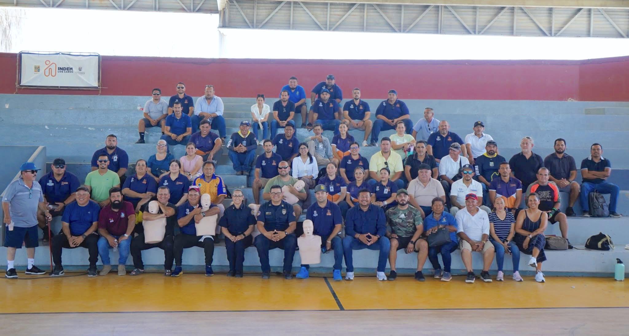 Los Cabos, Baja California Sur.- Con el compromiso de brindar espacios deportivos más seguros, entrenadores y personal del Instituto del Deporte del Municipio de Los Cabos (INDEM) concluyeron satisfactoriamente el curso de primeros auxilios básicos, impartido por el Cuerpo de Bomberos de San José del Cabo.