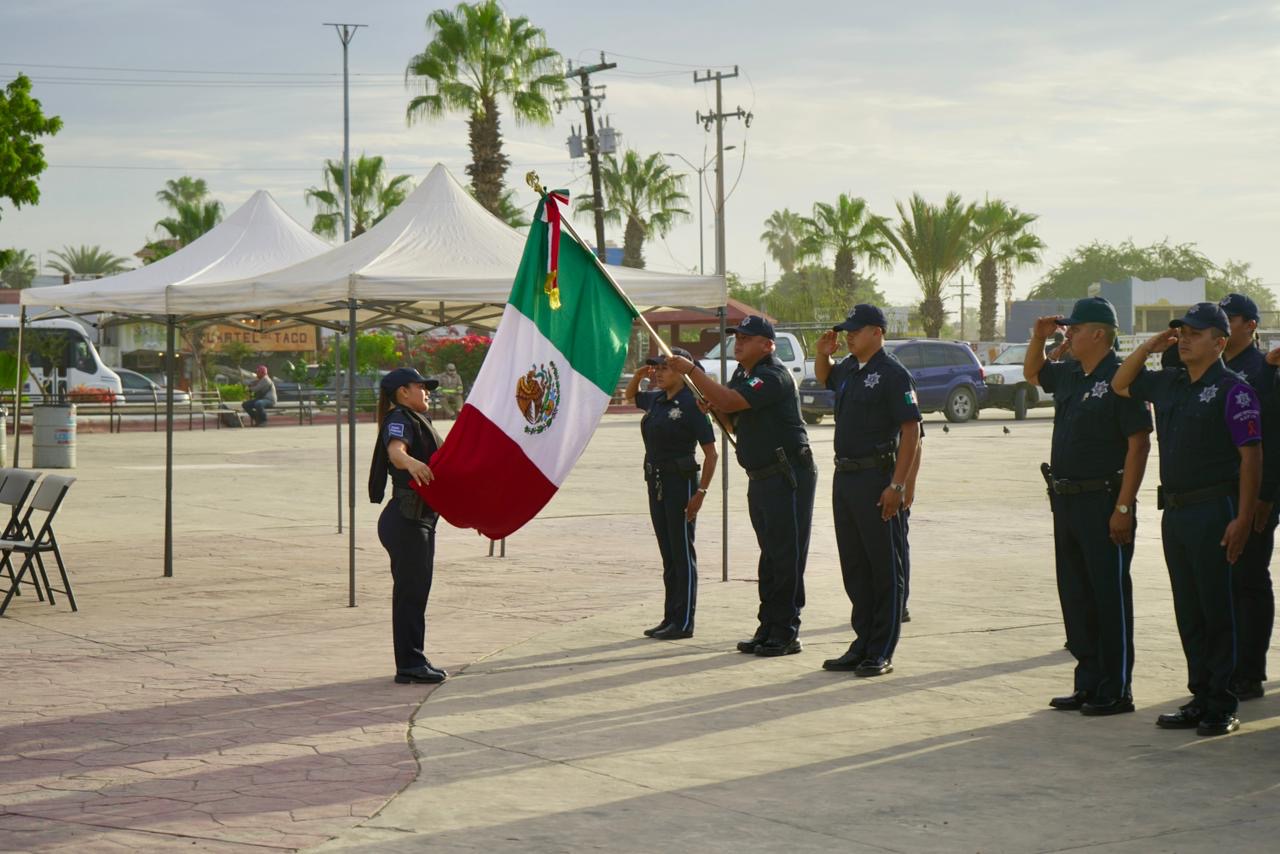 Los Cabos, Baja California Sur.– Como cada lunes, la Coordinación de Educación en Cabo San Lucas realizó la ceremonia de Honores a la Bandera en la plaza pública León Cota Collins, acto cívico que fortalece los valores patrios y la identidad histórica de la delegación. En esta ocasión, con el respaldo de la Coordinación de la Secretaría General, a cargo de Víctor Hugo Castro Martínez, se rindió homenaje a tres destacados cabeños ilustres: Jesús Castro Agúndez, Fernando I. Cota Sández e Ildefonso Green Ceseña, reconociendo su legado, trayectoria y aportación al desarrollo social, educativo y cívico de la región.