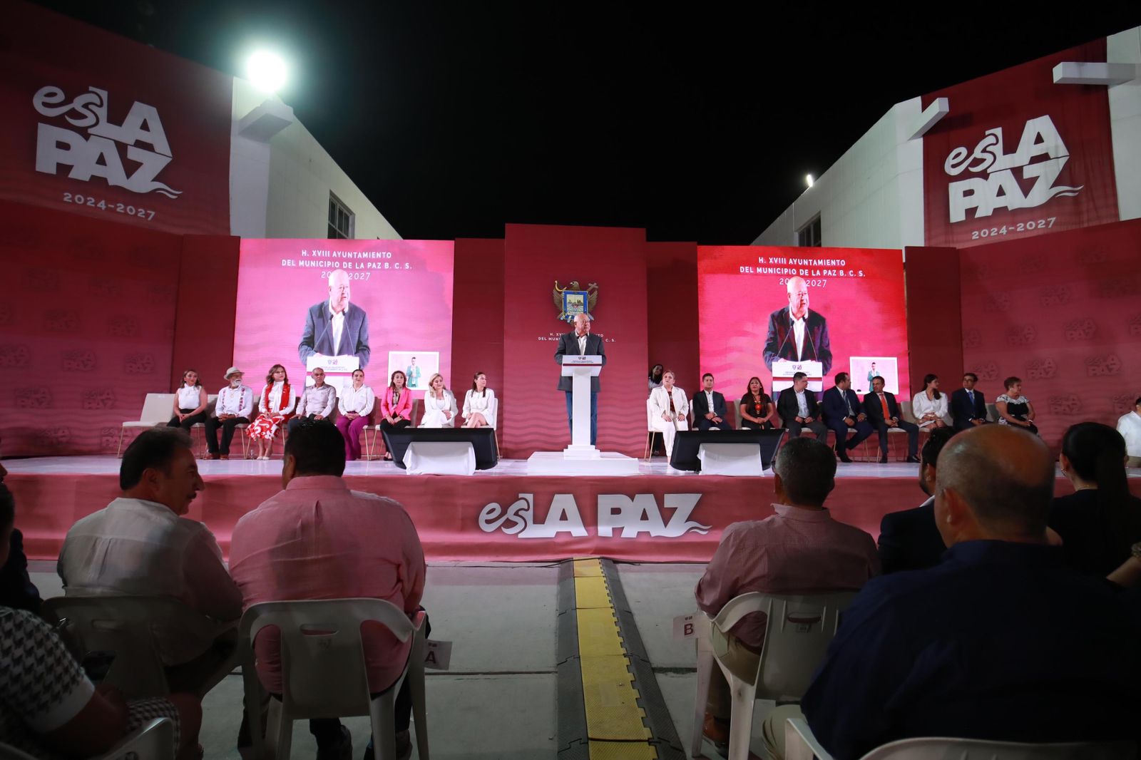 El gobernador Víctor Manuel Castro Cosío, estuvo presente en la toma de protesta de Milena Quiroga Romero, por segundo periodo consecutivo, como presidenta municipal de La Paz, a quien ratificó su disposición y compromiso de seguir sumando esfuerzos para que continúe la transformación social y equilibrada de todo el estado, hacia mejores estadios de bienestar, trabajando con honradez, transparencia y responsabilidad de luchar por quienes más lo necesitan.