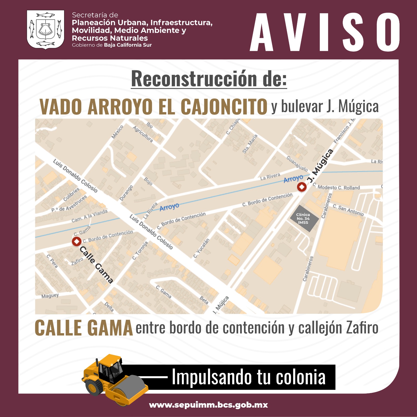 Como parte de las acciones establecidas por el Fideicomiso para la Atención de Daños Ocasionados por Desastres Naturales de Baja California Sur (FANDEBCS), la Secretaría de Planeación Urbana, Infraestructura, Movilidad, Medio Ambiente y Recursos Naturales (SEPUIMM), realiza la reconstrucción de cuatro vados en el municipio de La Paz.