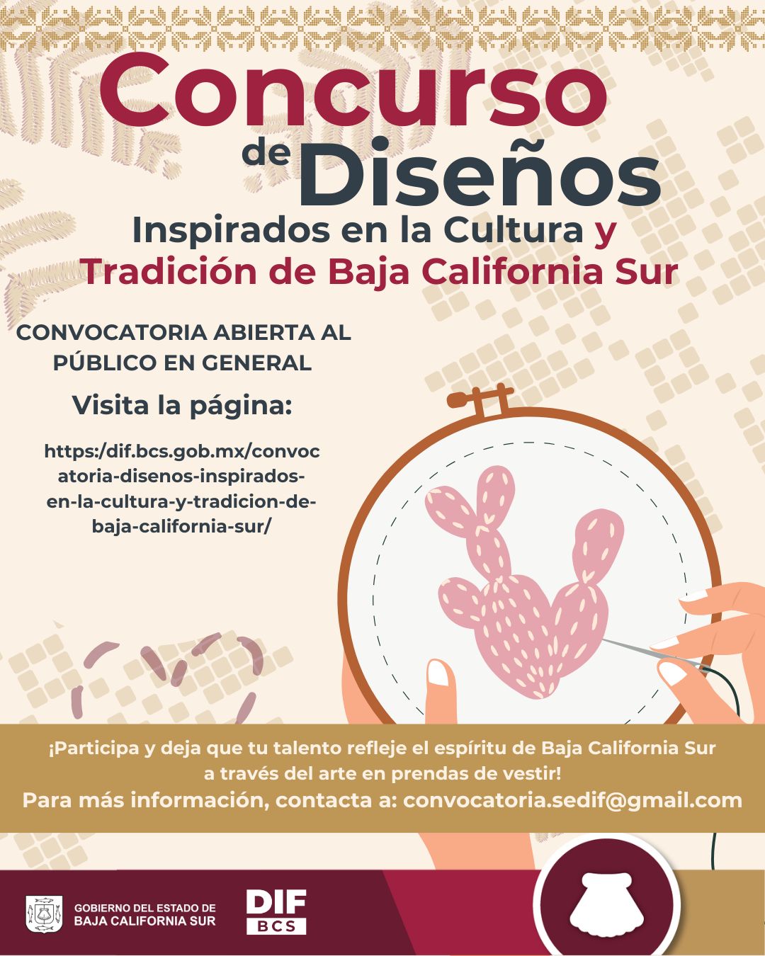 En este sentido mencionó que, para consultar la convocatoria completa, podrán ingresar a la página https://dif.bcs.gob.mx/convocatoria-disenos-inspirados-en-la-cultura-y-tradicion-de-baja-california-sur/, en Facebook en @SEDIF BCS o bien, comunicarse a los números de teléfono 612-12-4-29-22, 23 o 24. Pueden acudir también directamente a las dichas oficinas en Carretera al Norte KM. 4.5 Acceso a CECYTE, en la Colonia El Conchalito en la ciudad de La Paz.
