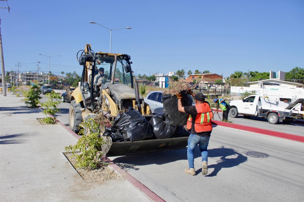 Los Cabos, Baja California Sur. – Como parte de las acciones permanentes de mejoramiento urbano impulsadas por la XV Administración Municipal, arrancaron los trabajos correspondientes al programa de Empleo Temporal, mediante el cual alrededor de 100 personas fueron distribuidas estratégicamente a lo largo del camellón central de la Carretera a Todos Santos, así como en el bulevar Constituyentes en Cabo San Lucas, las cuadrillas tienen como objetivo realizar labores de mantenimiento integral en dos de las vialidades más transitadas de la ciudad.