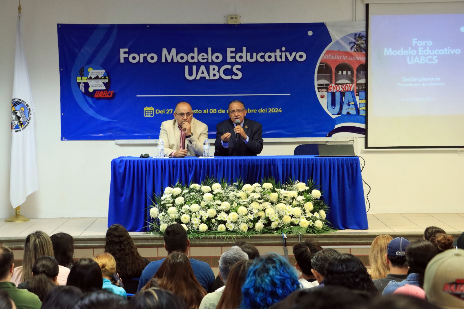 La Universidad Autónoma de Baja California Sur (UABCS) llevó a cabo una sesión plenaria para presentar los resultados del foro “Hacia la construcción del nuevo Modelo Educativo”, evento que estuvo encabezado por el rector Dante Salgado González, y que marcó la culminación de un extenso proceso de análisis y reflexión, que se desarrolló a lo largo de múltiples sesiones y mesas de trabajo celebradas entre los meses de agosto y octubre.