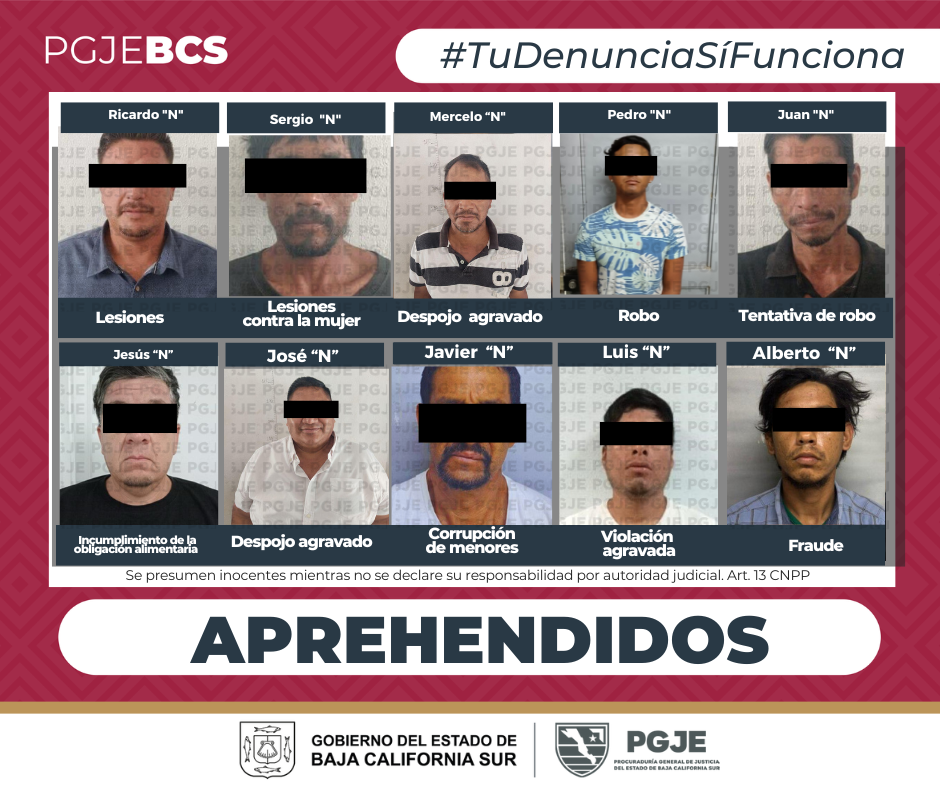 Un total de 11 mandamientos judiciales cumplimentaron elementos de investigación de la Procuraduría General de Justicia del Estado (PGJE), para lo que realizaron los respectivos operativos en los municipios de Mulegé, Comondú, La Paz y Los Cabos.