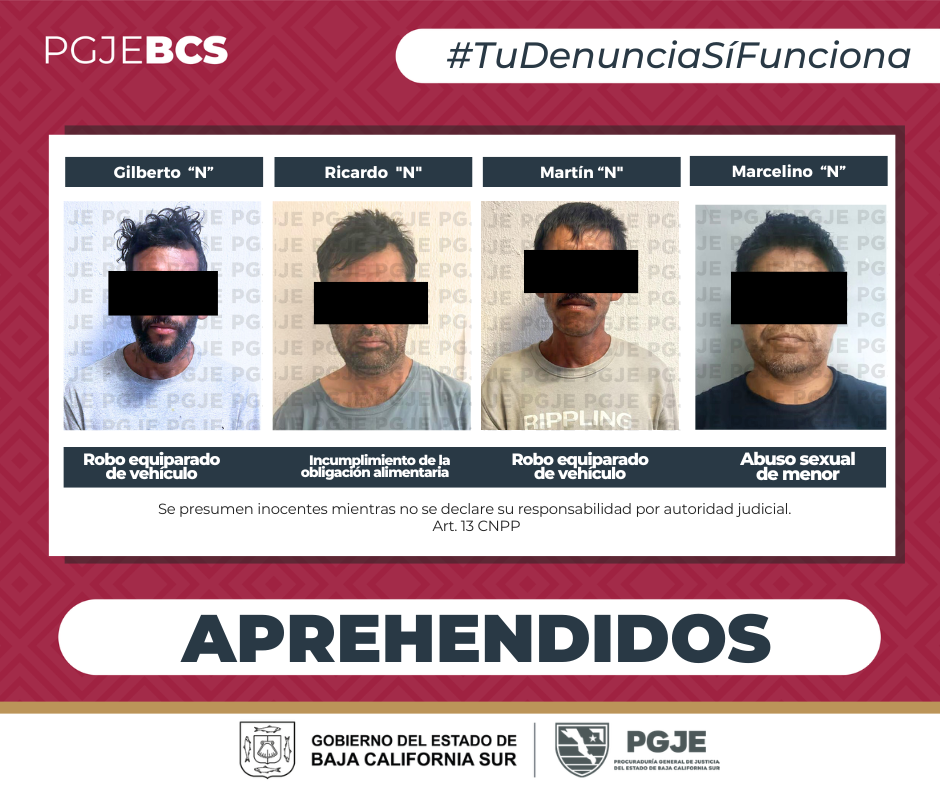 También la misma tarde del 20 de abril en San José del Cabo, fue aprehendido Gilberto “N”, por su relación en el delito de robo equiparado de vehículo.