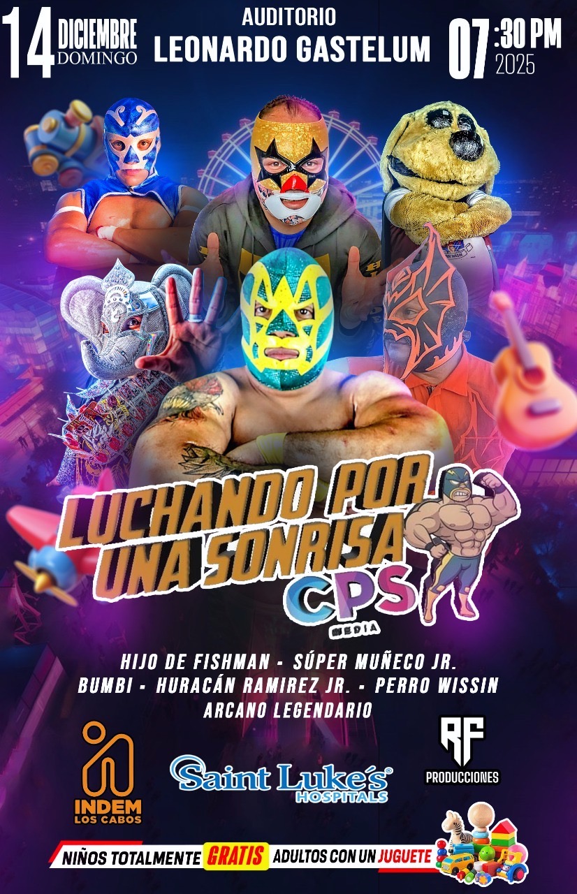 Por su parte, el gerente comercial de CPS Media en Baja California Sur y organizador del evento, Rodrigo Flores Álvarez, dio a conocer que esta función de lucha libre se realiza como parte de las campañas de responsabilidad social del corporativo multiplataforma integrado por Radiante FM, TV Mar y Tribuna de México, entre otros: “Queremos apoyar a las y los niños y regalarles una sonrisa en estas fiestas decembrinas; por eso los invitamos a disfrutar de luchadores de talla nacional completamente gratis para los menores”.