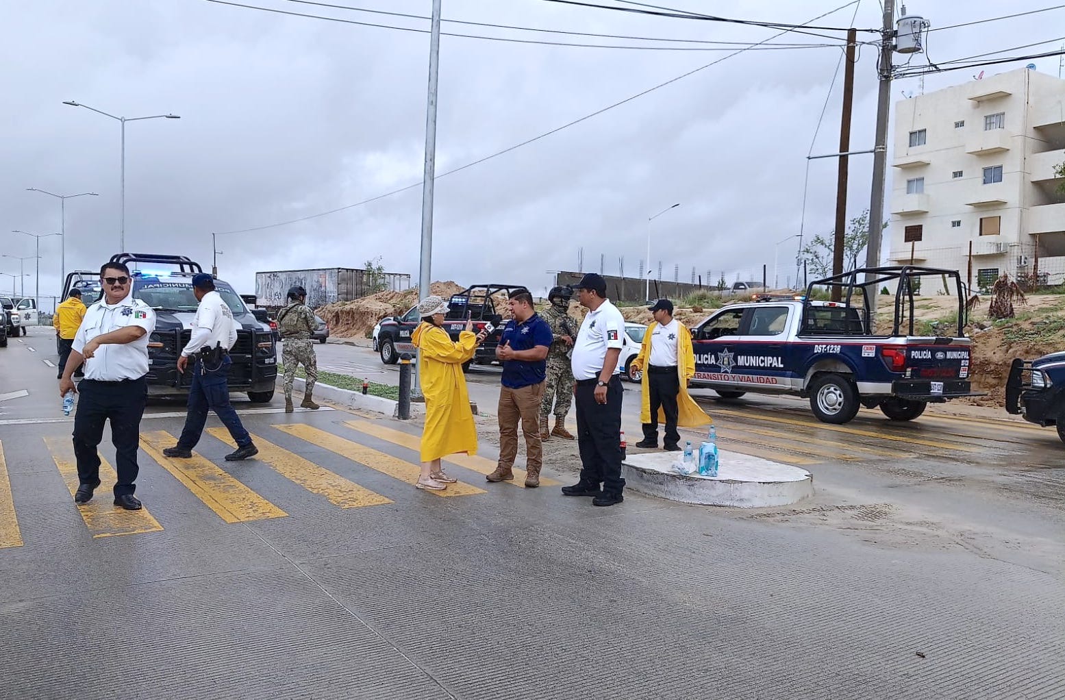 Entre las acciones emprendidas destacan el arrastre y asistencia a vehículos varados en vialidades afectadas por la acumulación de agua y sedimentos, así como la vigilancia constante en los principales cruces y avenidas del municipio. De igual manera, se mantienen patrullajes preventivos en los refugios temporales habilitados en Cabo San Lucas, San José del Cabo y las delegaciones, con el fin de garantizar la seguridad de las familias que han sido trasladadas a dichos espacios.