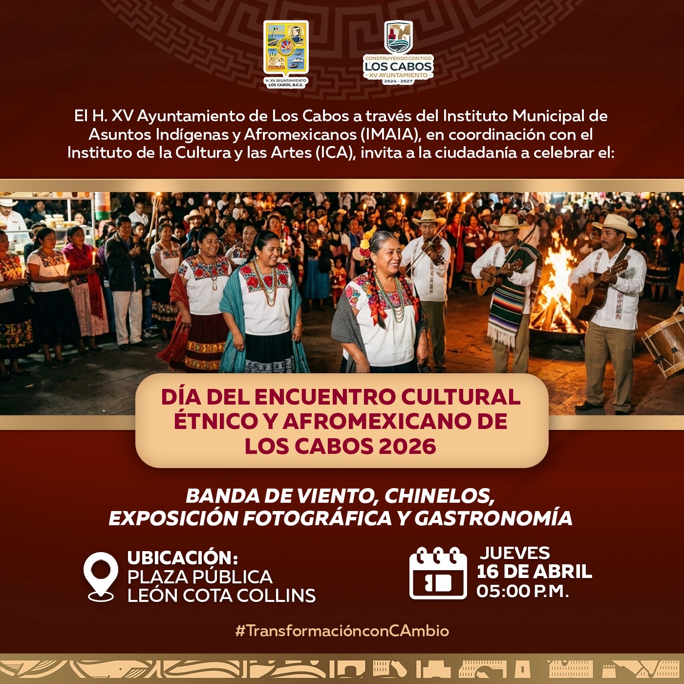El director general del IMAIA, Leonardo Jiménez Castrejón, informó que este encuentro se realizará el próximo jueves 16 de abril a las 17:00 horas en la Plaza Pública León Cota Collins, destacando que se trata de un evento que busca fortalecer la identidad, la inclusión y el reconocimiento de las comunidades indígenas y afromexicanas en el municipio.