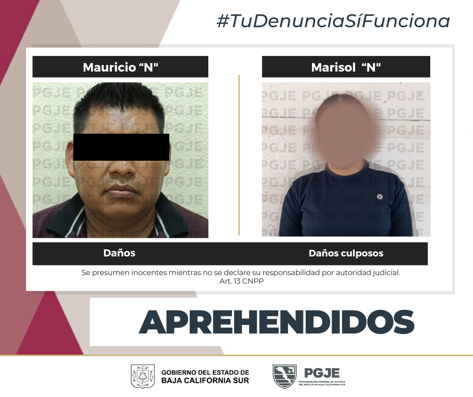 Agentes de investigación de la Procuraduría General de Justicia del Estado (PGJE) de Baja California Sur, ejecutaron órdenes de aprehensión contra dos personas posiblemente relacionadas a hechos delictivos.