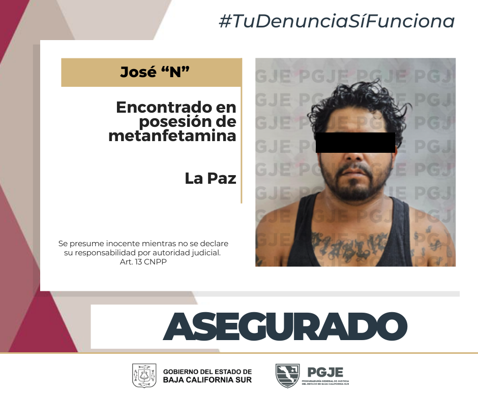 Agentes de investigación de la Procuraduría General de Justicia del Estado (PGJE) de Baja California Sur aseguraron a un hombre originario de Michoacán en posesión de 2 mil 500 dosis de droga la mañana del 17 de julio, en la capital del estado.