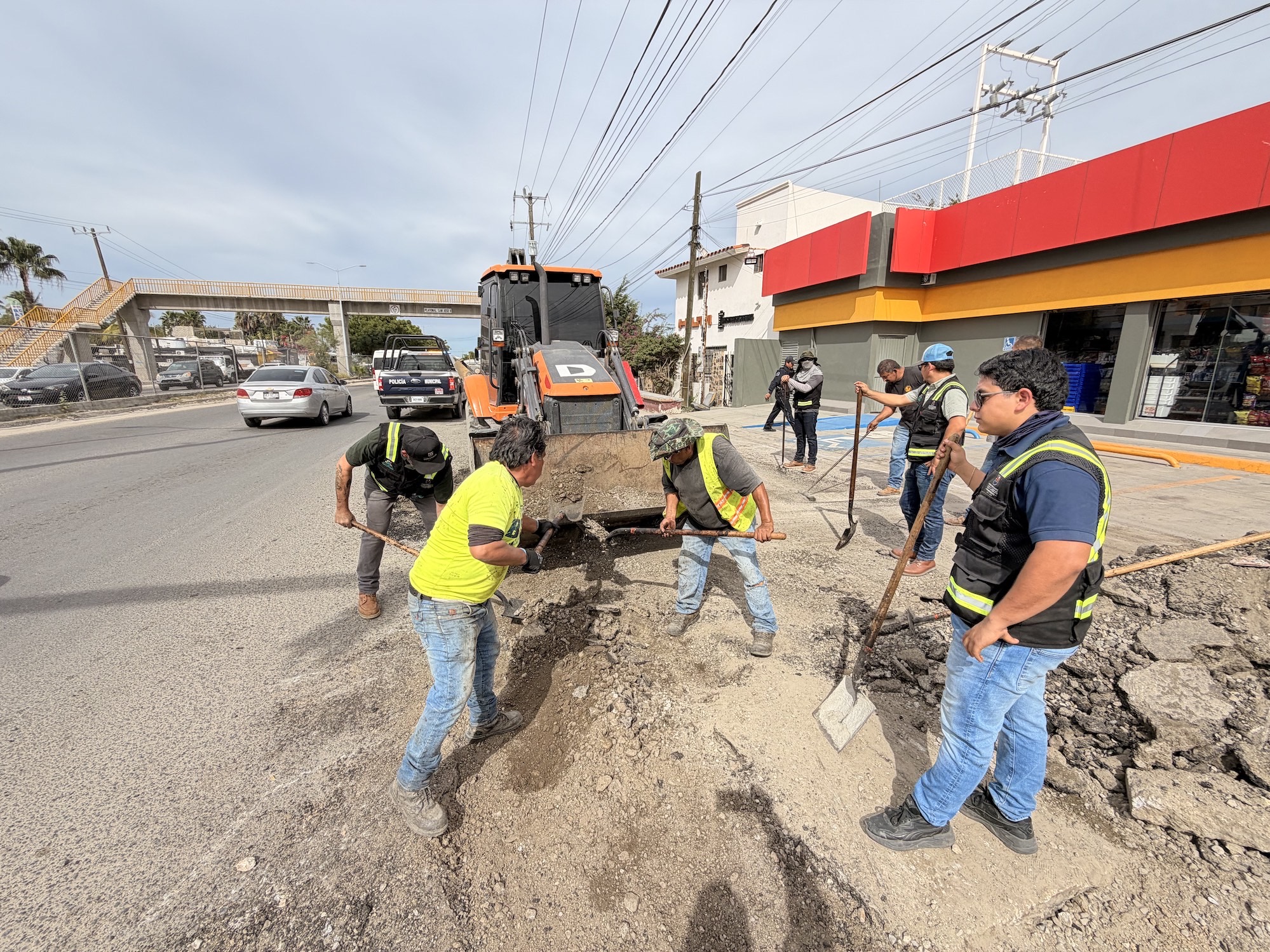 Como parte de estas acciones, bajo la coordinación del director general de Obras Públicas y Asentamientos Humanos, Christopher Enríquez González, se llevaron a cabo trabajos de bacheo sobre la Carretera Transpeninsular, a la altura de la colonia Santa Rosa, en San José del Cabo, donde se atendieron diversos tramos que presentaban deterioro significativo y que requerían intervención inmediata para prevenir riesgos y afectaciones a la circulación vehicular.