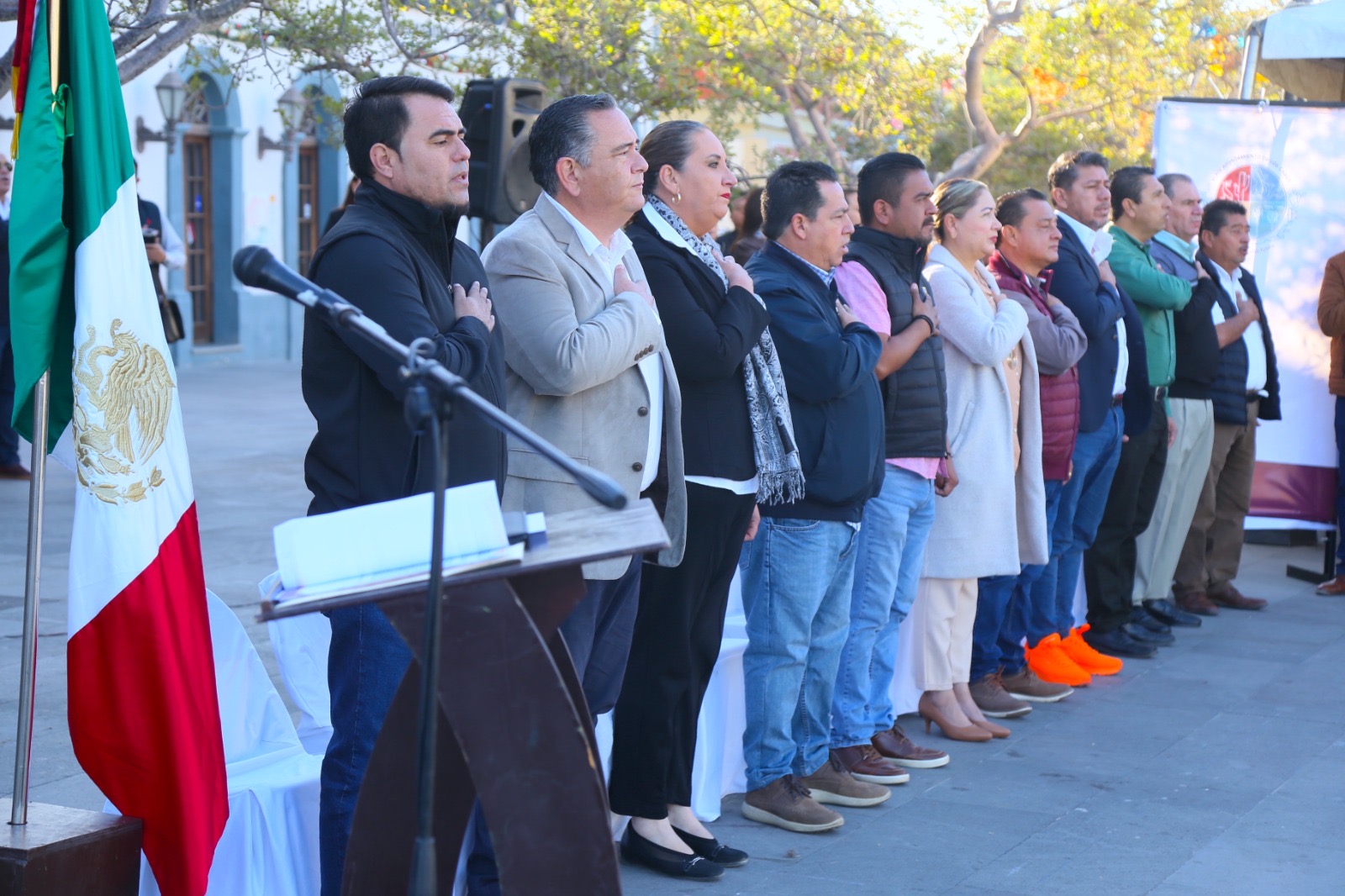 Los Cabos, B.C.S., 15 de enero 2024.- El XIV Ayuntamiento de Los Cabos que preside Oscar Leggs Castro a través de la Dirección Municipal de Educación, conmemoró este lunes 15 de enero el 49° aniversario de la Constitución Política del Estado Libre y Soberano de Baja California Sur, acto que se desarrolló en la explanada del Palacio Municipal en San José del Cabo, contando con la asistencia de estudiantes de la escuela primaria Francisco Javier Mina.