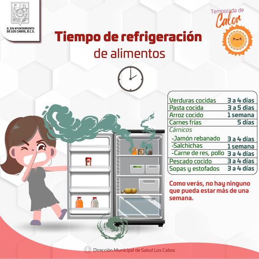 Los Cabos, B.C.S., 27 mayo 2024.- Personal de la Dirección Municipal de Salud, reitera algunas medidas importantes que se deben llevar a cabo durante esta temporada de calor, con el fin de prevenir enfermedades relacionadas con la alimentación.