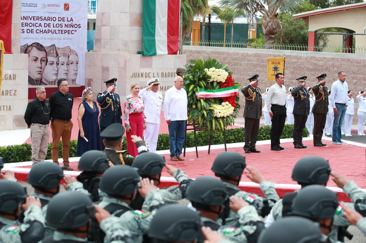Para rendir honor, el mandatario sudcaliforniano recordó la importancia de esta fecha, cuando el 13 de septiembre de 1847, un puñado de jóvenes soldados ofrendaron su vida en el Castillo de Chapultepec defendiendo nuestra independencia y soberanía ante la invasión de tropas de los Estados Unidos de América.