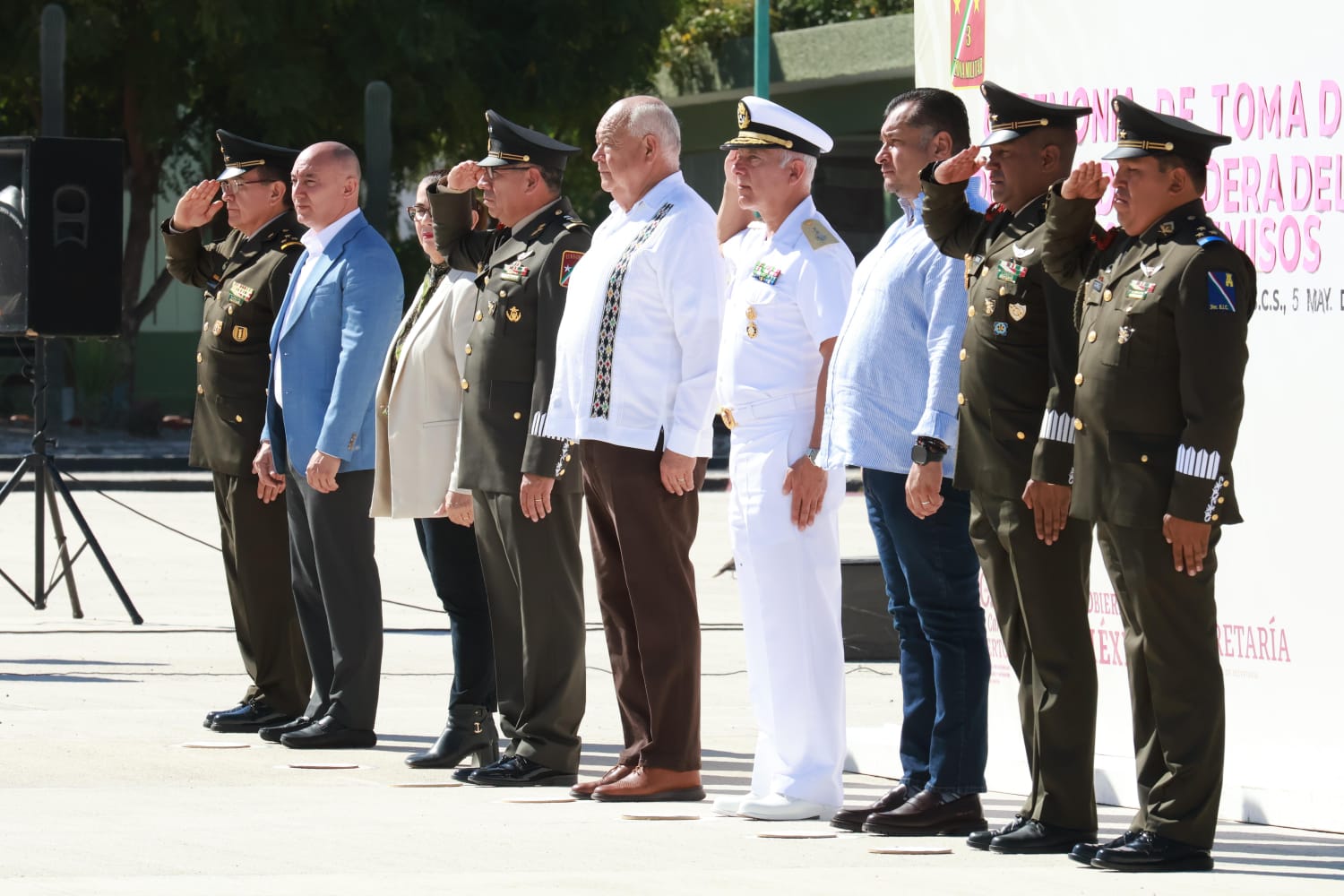 Acompañado por el General de División Diplomado de Estado Mayor, Ignacio Murillo Rodríguez, Comandante de la 3/a Zona Militar, del vicealmirante José Carlos Tinoco Castrejón, Jefe del Estado Mayor de la Cuarta Región Naval, autoridades estatales y del Poder Judicial, el Ejecutivo tomó protesta a los 183 jóvenes, quienes hasta el mes de diciembre serán adiestrados por personal militar. “Protestan honrar y defender con lealtad y constancia esta bandera que simboliza la independencia, el honor, las instituciones y la integridad del territorio.”