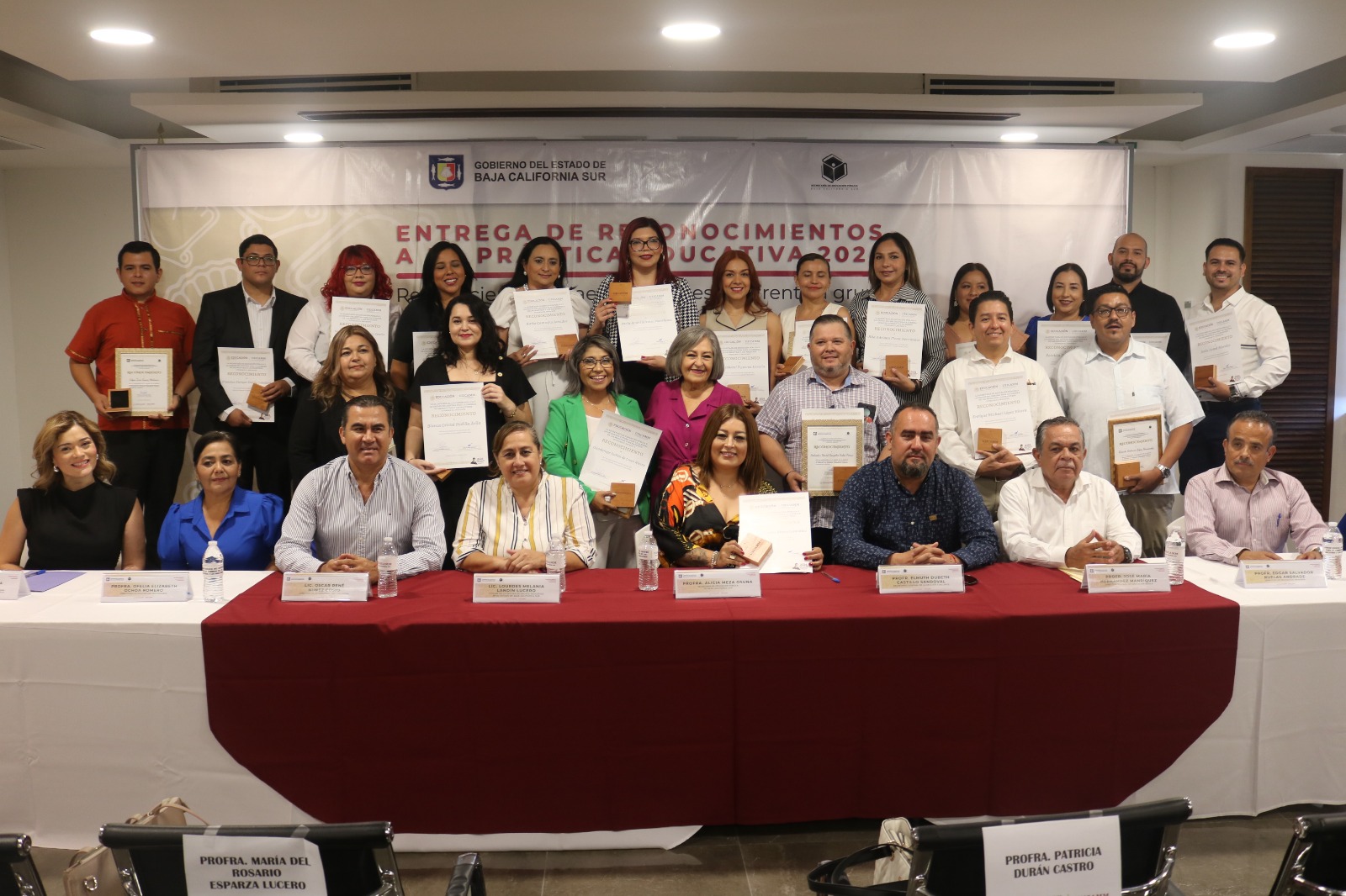 Los docentes galardonados fueron Rita Adriana, de Educación Física; a Ammi Jahazel Figueroa Heredia, Edna Berenice Carballo Montaño y Annel Aranith Murillo Castro, de Educación Preescolar, y a Patricia Durán Castro y María del Rosario Esparza Lucero, de Educación Especial.