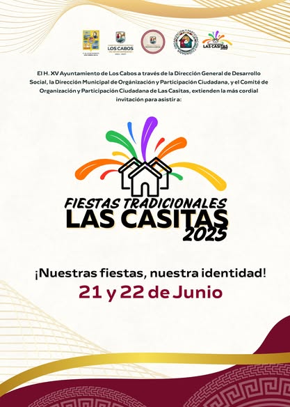 Los Cabos, Baja California Sur.- La comunidad de Las Casitas se prepara para vivir un fin de semana lleno de cultura, tradición y convivencia con la celebración de sus Fiestas Tradicionales 2025, que se llevarán a cabo el próximo sábado 21 y domingo 22 de junio en la cancha de usos múltiples de la localidad.