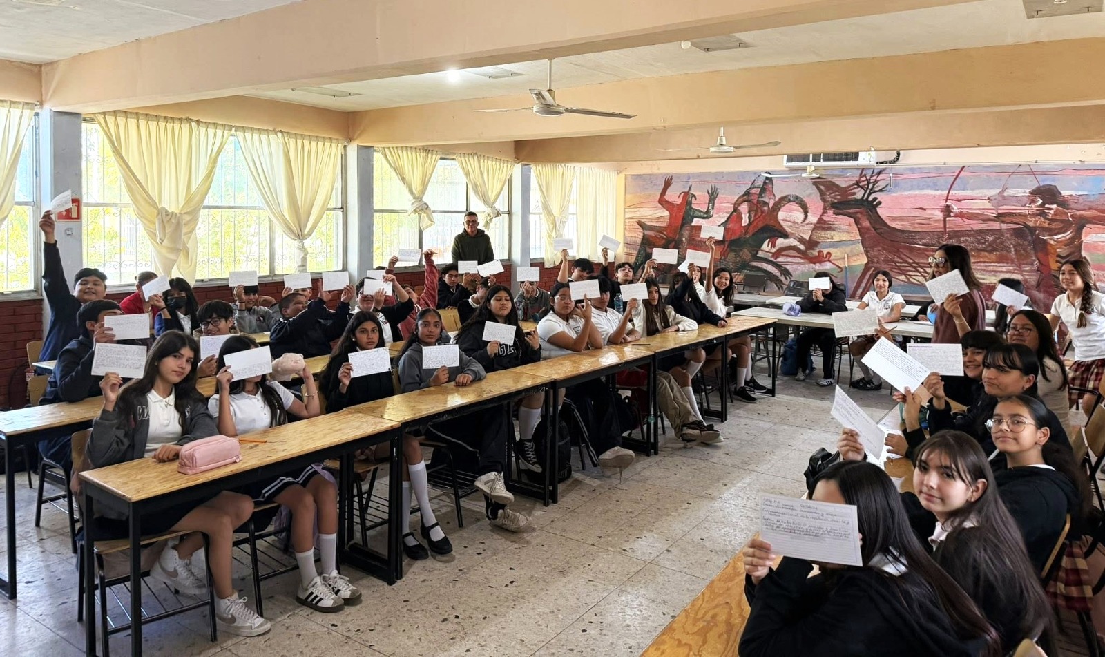 Explicó que esta estrategia, promovida por el Gobierno de México en coordinación con el Gobierno del Estado a través de la SEP, busca transformar los entornos escolares y familiares para fortalecer ambientes libres de violencia, mediante la educación y el arte como herramientas para prevenir adicciones y fomentar una cultura de paz, en apego a los principios de la Nueva Escuela Mexicana.