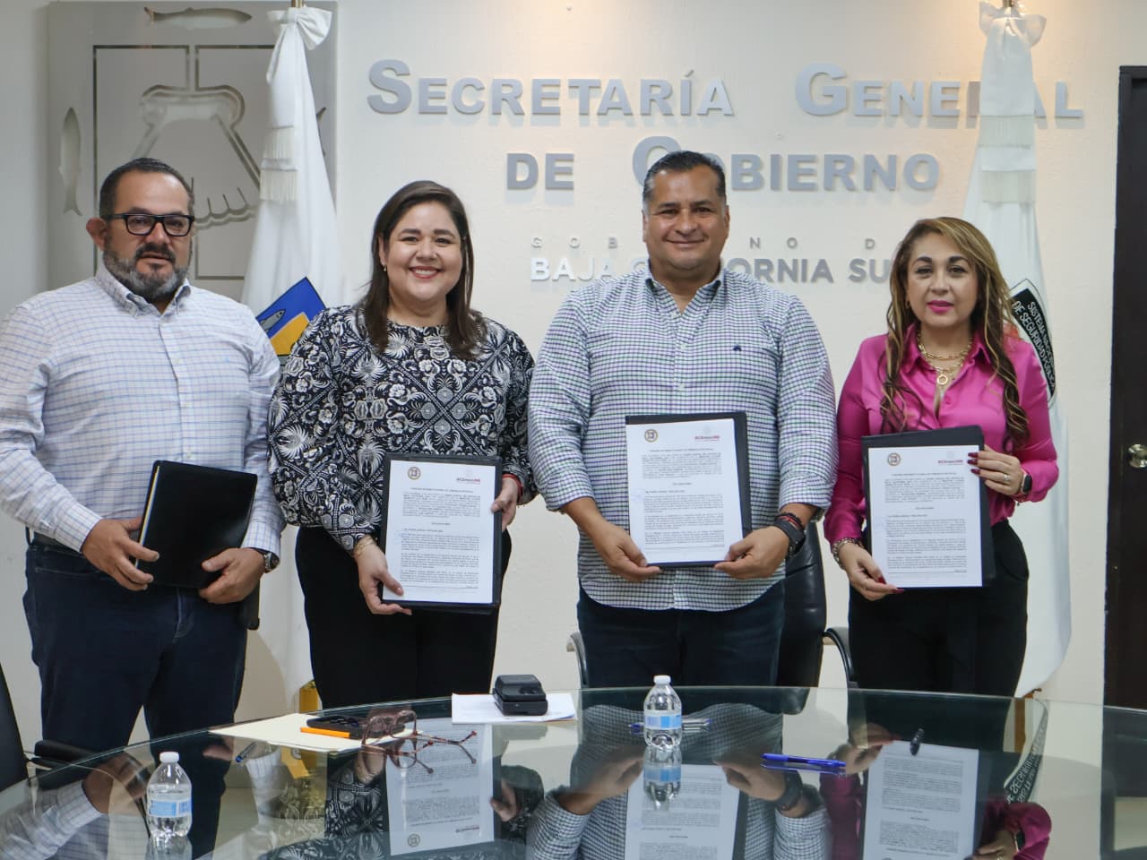 El secretario General de Gobierno, José Saúl González Núñez en representación del Poder Ejecutivo Estatal, encabezó la firma de un convenio Interinstitucional de Comunicación Oficial por Medios Electrónicos con el Poder Judicial del Estado, representado por la magistrada presidenta, Claudia Jeanette Cota Peña.
