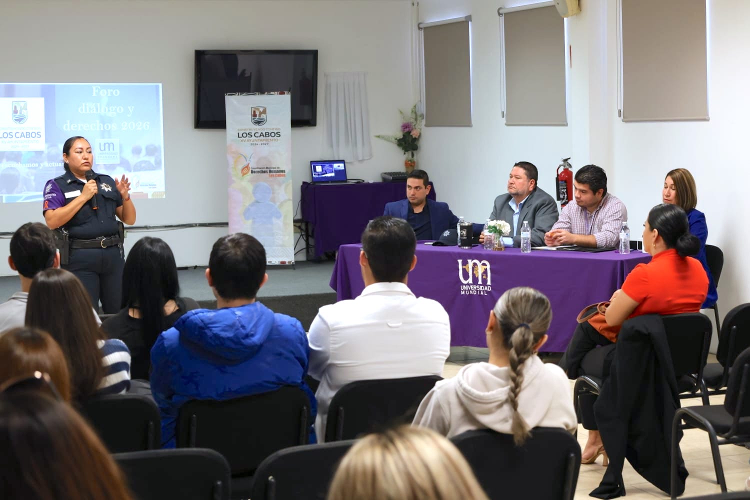 Los Cabos, Baja California Sur.– Con el objetivo de generar espacios de reflexión, participación y construcción colectiva en torno a los derechos fundamentales, se llevó a cabo el “Foro Diálogos y Derechos 2026: Hablamos, escuchamos y actuamos”, un encuentro orientado a compartir conocimientos, experiencias y propuestas que fortalezcan el Estado de Derecho en el municipio.