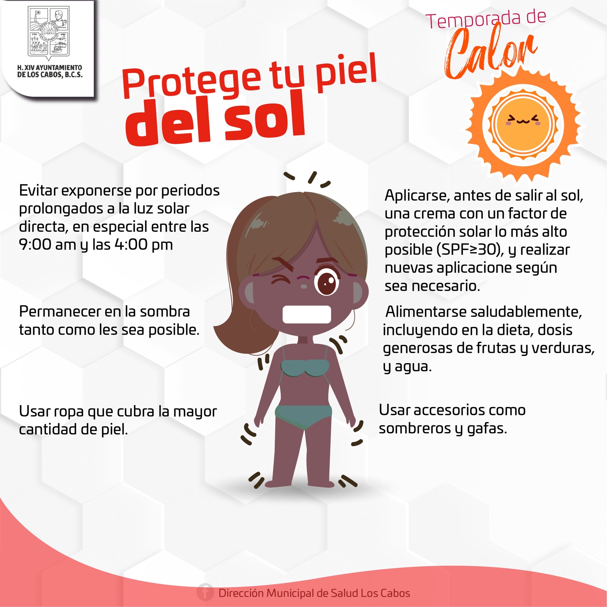 Los Cabos, B.C.S, 23 mayo 2024- El Gobierno de Los Cabos, a través de la Dirección Municipal de Salud, reitera la importancia de tomar medidas preventivas y de cuidado ante la ola de calor que está afectando la región, temperaturas que pueden representar un riesgo para la salud, especialmente para los grupos más vulnerables, como la niñez y las personas adultas mayores, así como con enfermedades crónicas.