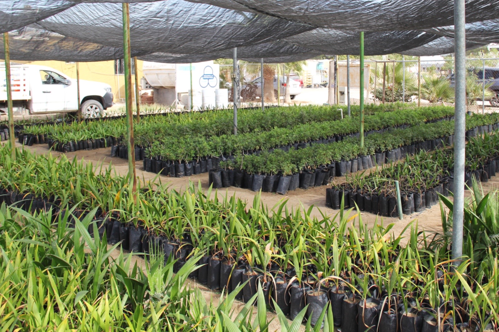 Detalló que, tan solo durante el año 2025, se produjeron más de 18 mil plantas destinadas a su reforestación en distintas regiones del estado, utilizando especies nativas o adaptadas al entorno local, entre ellas ciruelo del monte, palma washingtonia o palma abanico, palo de arco, palo blanco, mezquite y palo verde, las cuales presentan mayor resistencia a las condiciones climáticas de la región y requieren un menor consumo de agua.