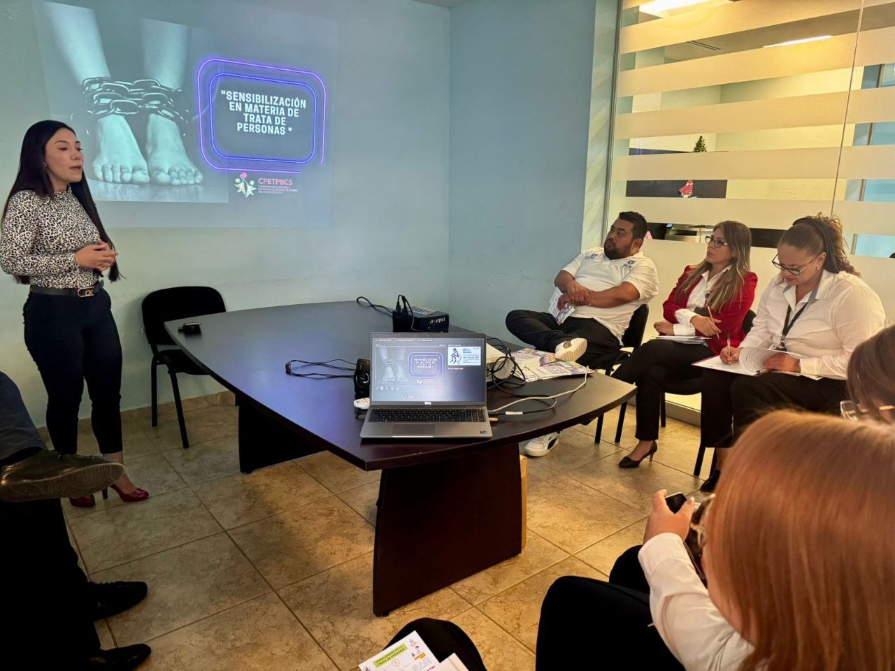En coordinación con dependencias estatales, la Comisión para Prevenir y Erradicar la Trata de Personas en Baja California Sur (CPETPBCS) impartió en el municipio de Comondú la plática “Sensibilización en materia de Trata de Personas” dirigida a 16 servidoras y servidores públicos de la Procuraduría General de Justicia del Estado (PGJE).