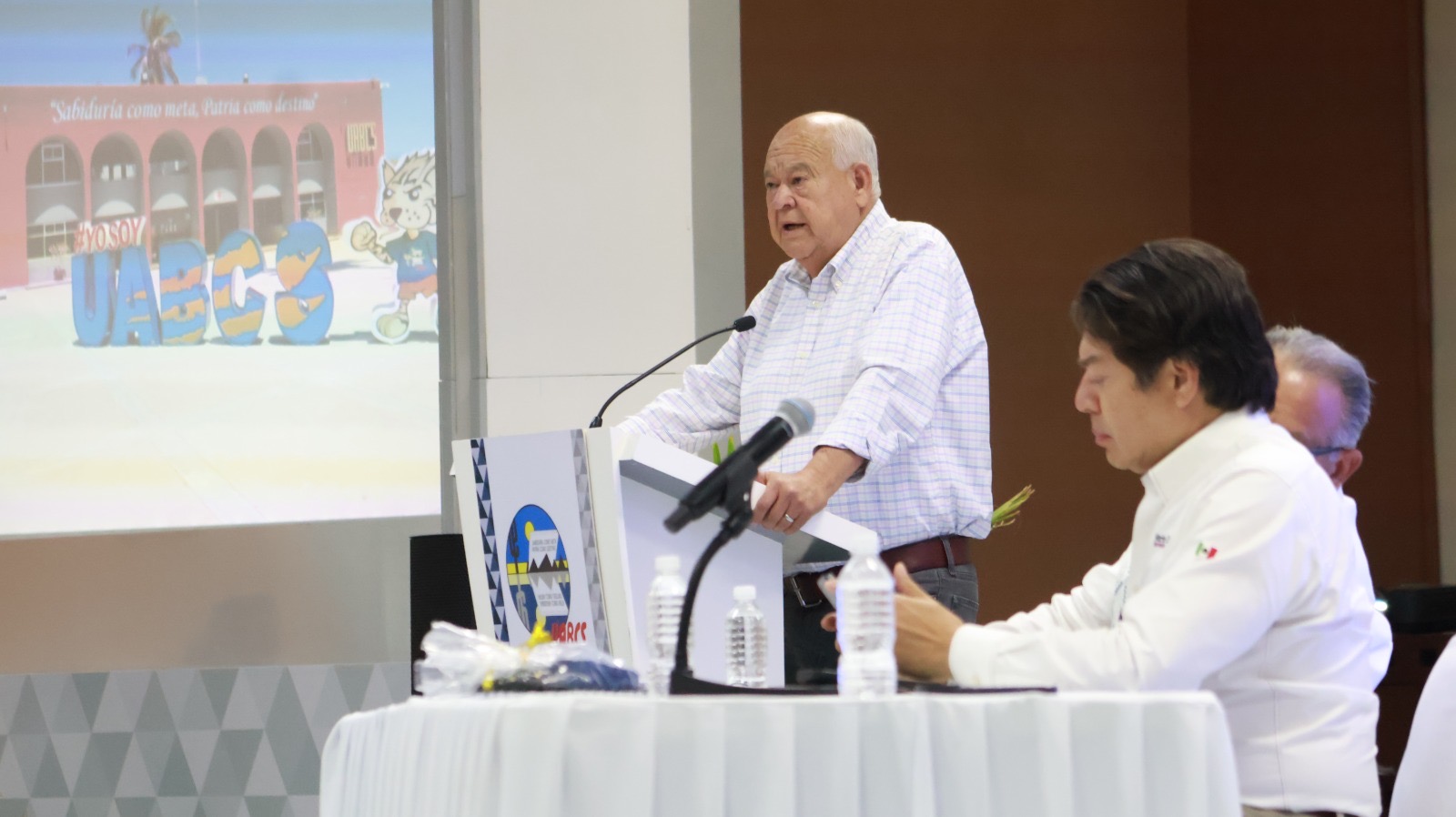 En el Polifórum Cultural de la Universidad Autónoma de Baja California Sur (UABCS), el gobernador Víctor Manuel Castro Cosío, el secretario de Educación Pública, Mario Delgado Carrillo, y el rector de la institución, Dante Arturo Salgado González, convocaron a autoridades y representantes de instituciones de nivel medio superior y superior a sumarse a la Nueva Escuela Mexicana (NEM).